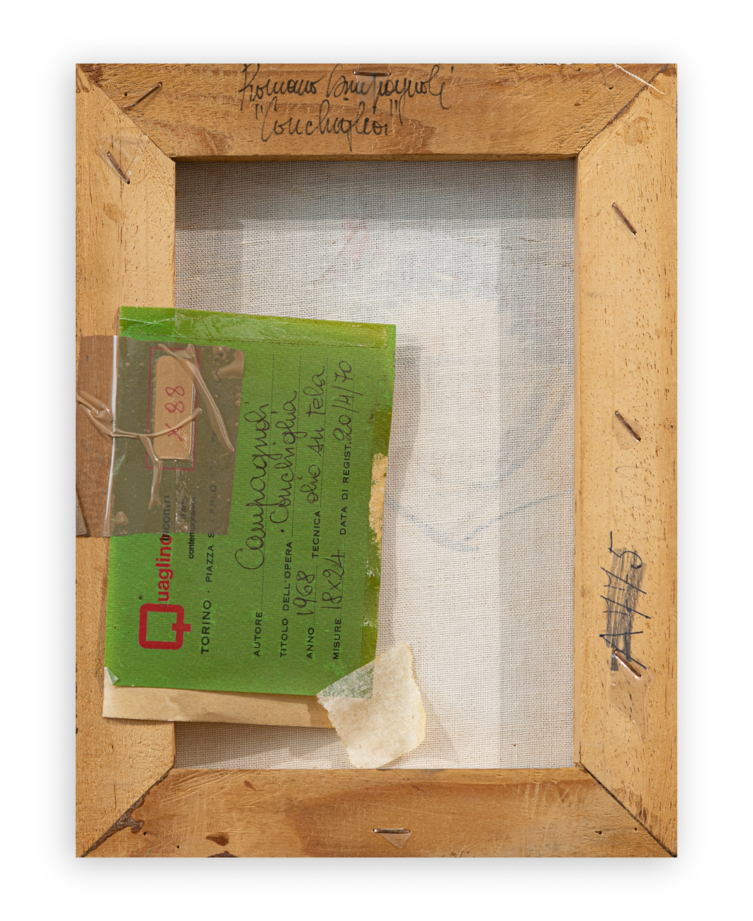 Etichetta della Galleria Quaglino Incontri d'Arte Contemporanea (TO) al retro