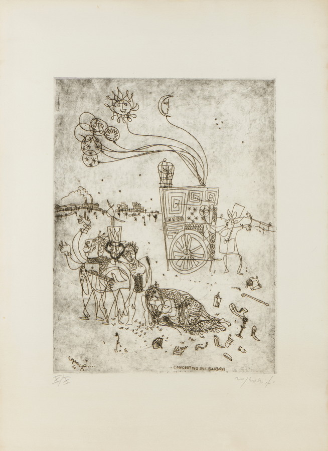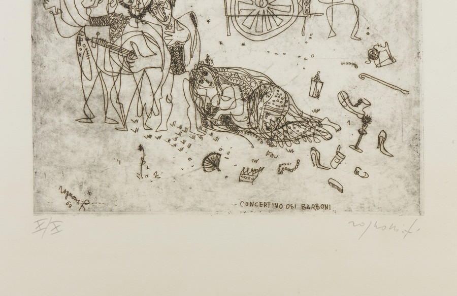 ROGNONI FRANCO (1913 - 1999) CONCERTINO DEI BARBONI . 1962. acquaforte. Cm 49,00 x 69,50. firma e tiratura a matita, es. X/X,