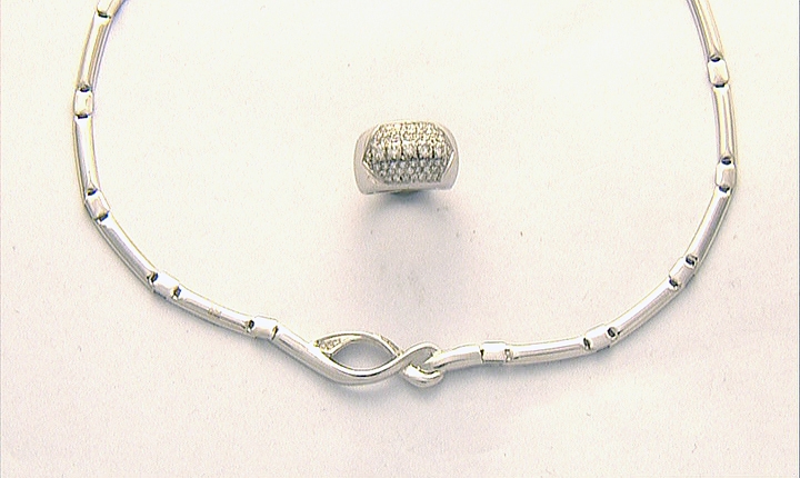 LOTTO DI DUE GIOIELLI. In oro bianco 18 kt composto da collana e da anello con diamanti taglio brillante per tot. cts. 1,10 ca.