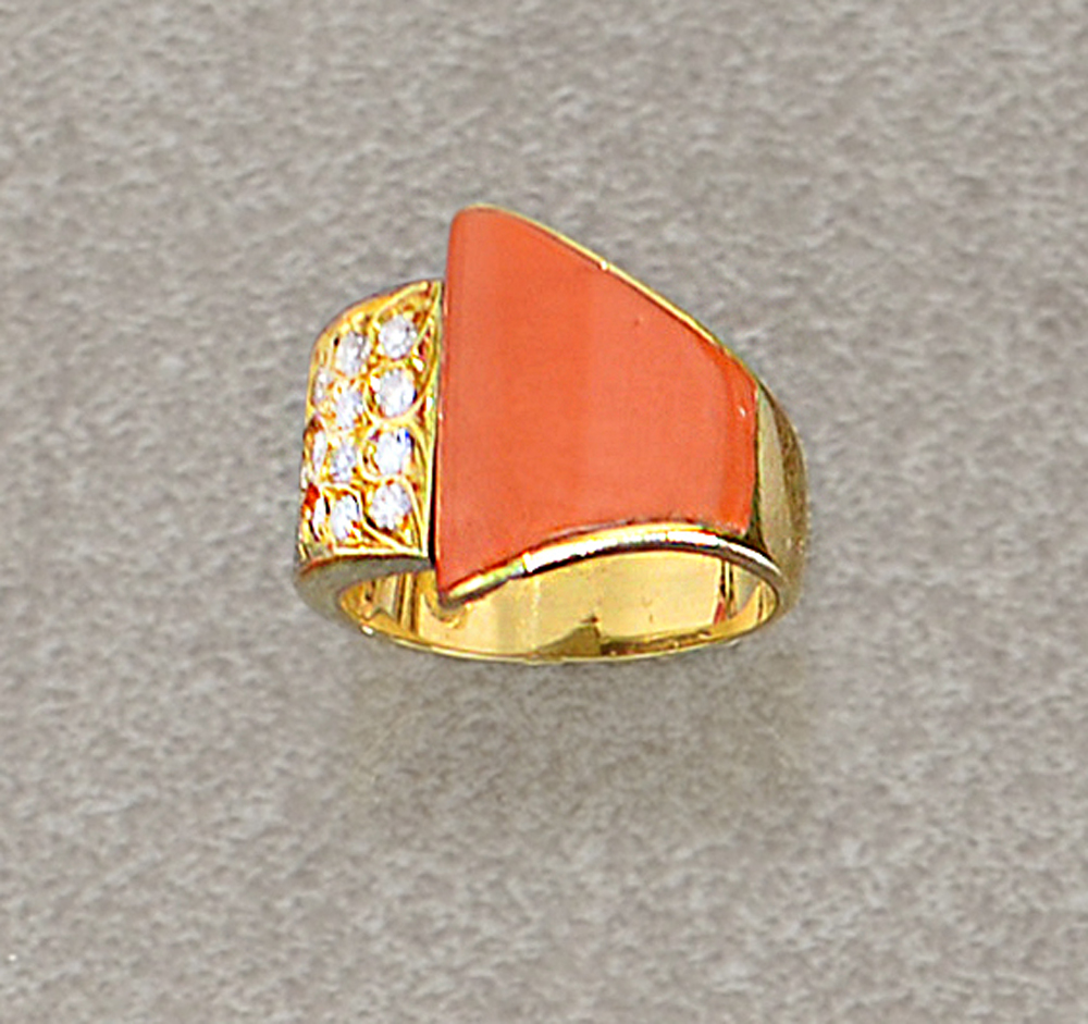 Lot 200 | ANELLO ANELLO. In oro giallo 18 kt con inserto sagomato in corallo arancio...