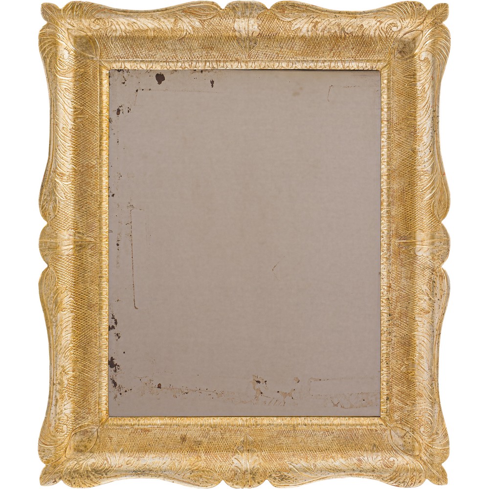 Specchiera in cornice a guantiera in legno intagliato e dorato ad argento e mistura.