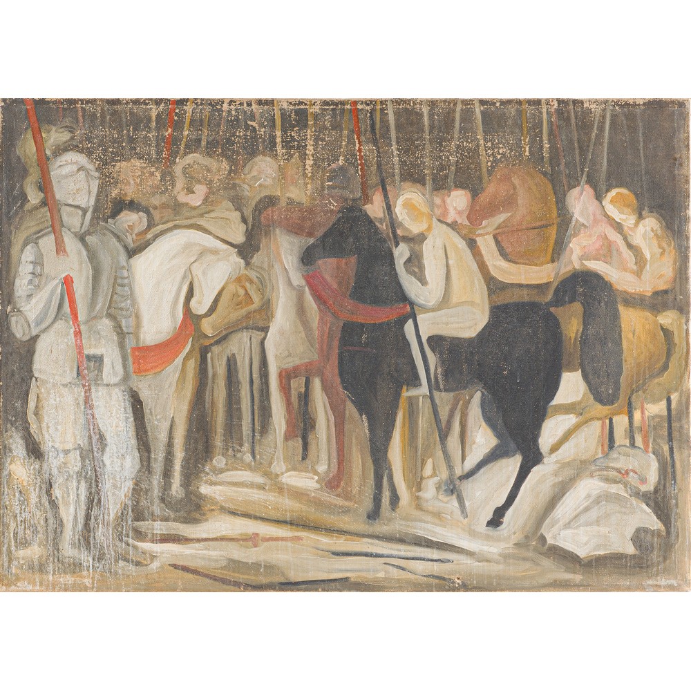 SCUOLA ITALIANA DEL XX SECOLO, Cavalieri, Olio su tela