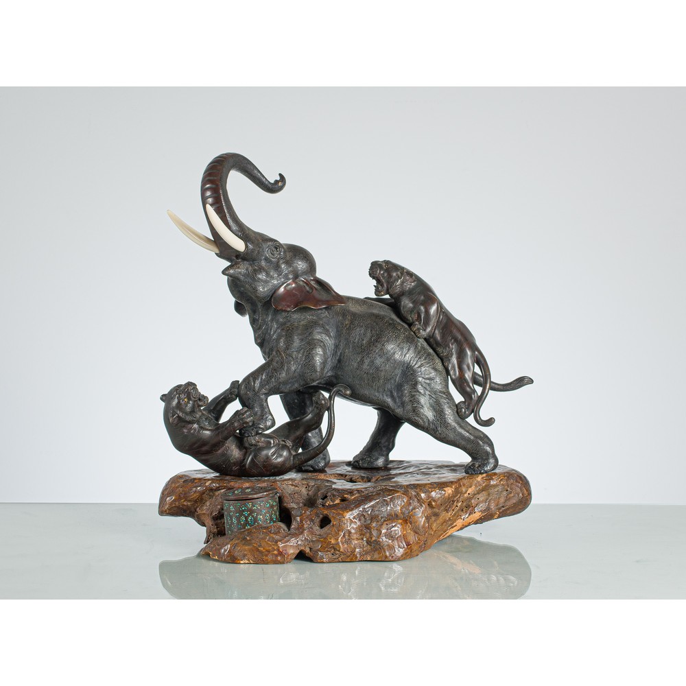 Lot 180 | SEIYA GENRYUSAI, Elefante e tigri, Okimono in bronzo