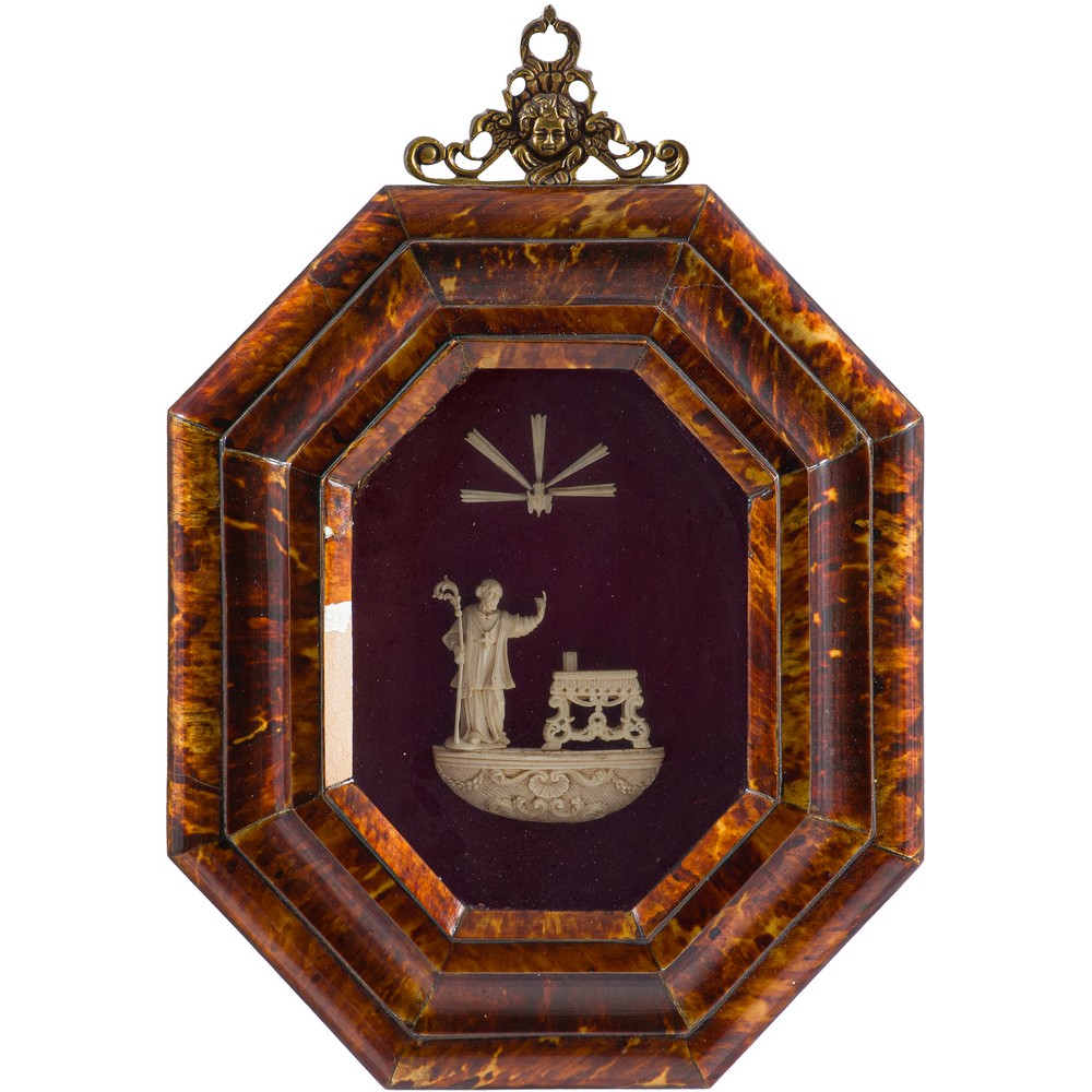 Scultura in avorio raffigurante "San Paolo e lo Spirito Santo con altarino" entro teca in tartaruga del XIX secolo. L'opera è corredata da certificato Cites.