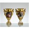 Coppia di vasi Impero in porcellana dipinta a mano, medaglioni raffiguranti "Scene di carità", doratura ad oro zecchino.