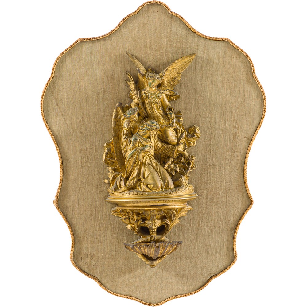 LEONARD MOREL - LADEUIL, Acquasantiera bronzo dorato mercurio