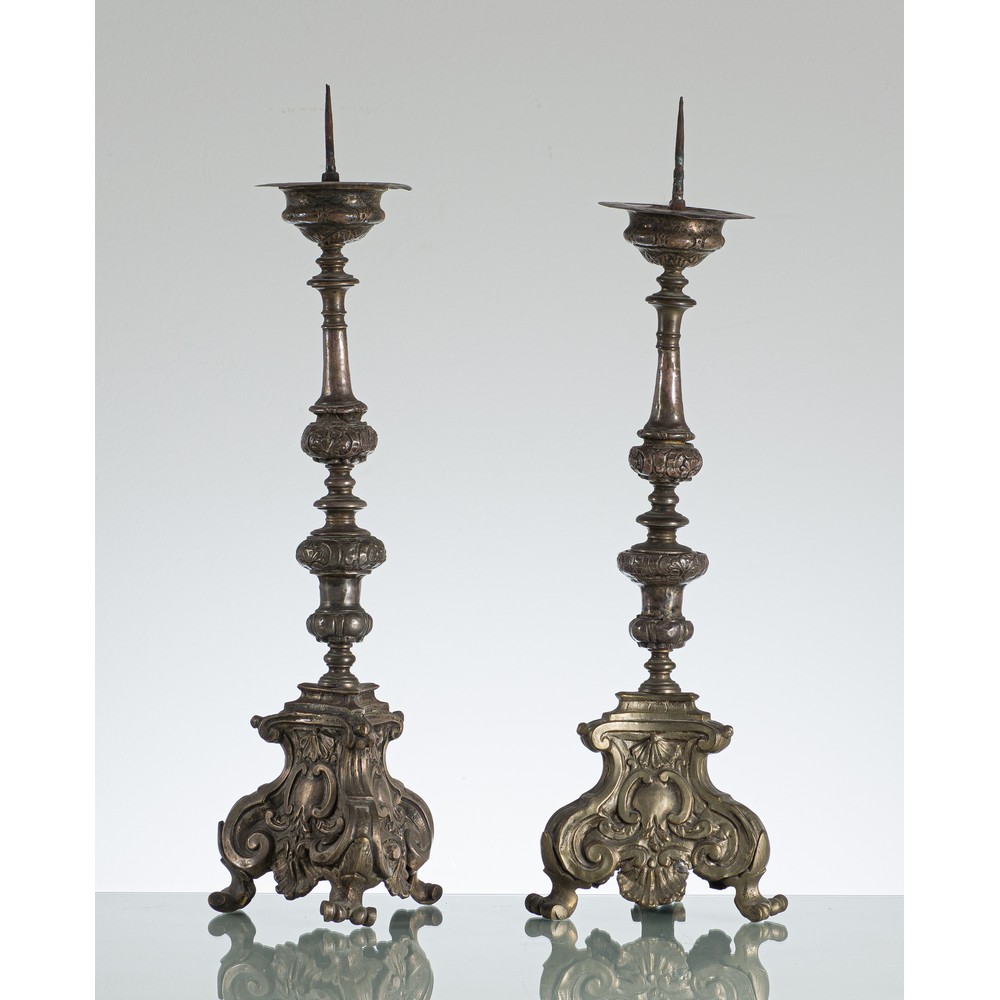 MANIFATTURA SICILIANA DEL XVIII SECOLO, Coppia di candelieri