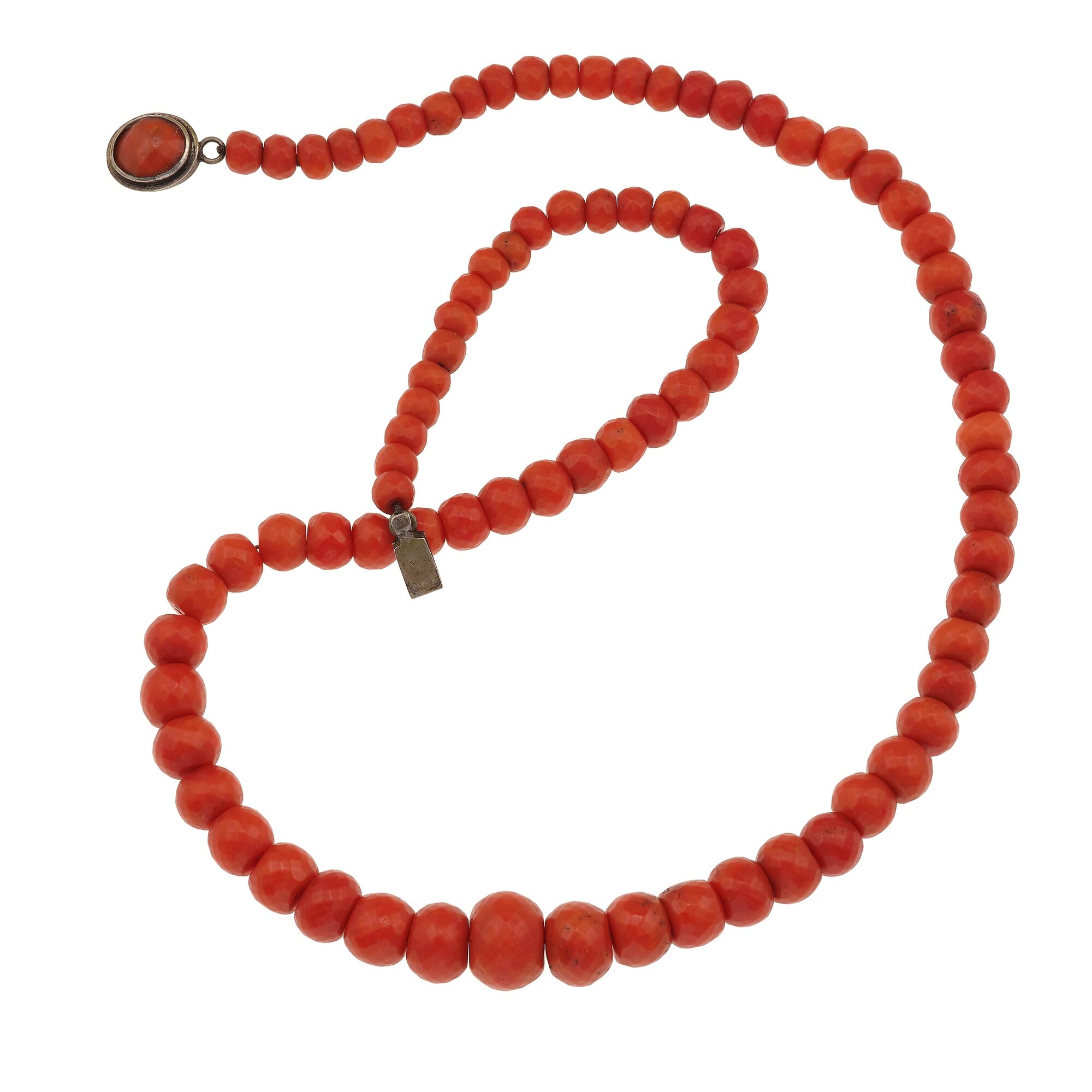 Lot 2 | Collana con boules di corallo a scalare fermezza in argento, gr. 80,4 cm 60,3...
