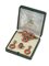 Petochi. Parure composta da anello, orecchini e collana con pendente/spilla con corallo e diamanti