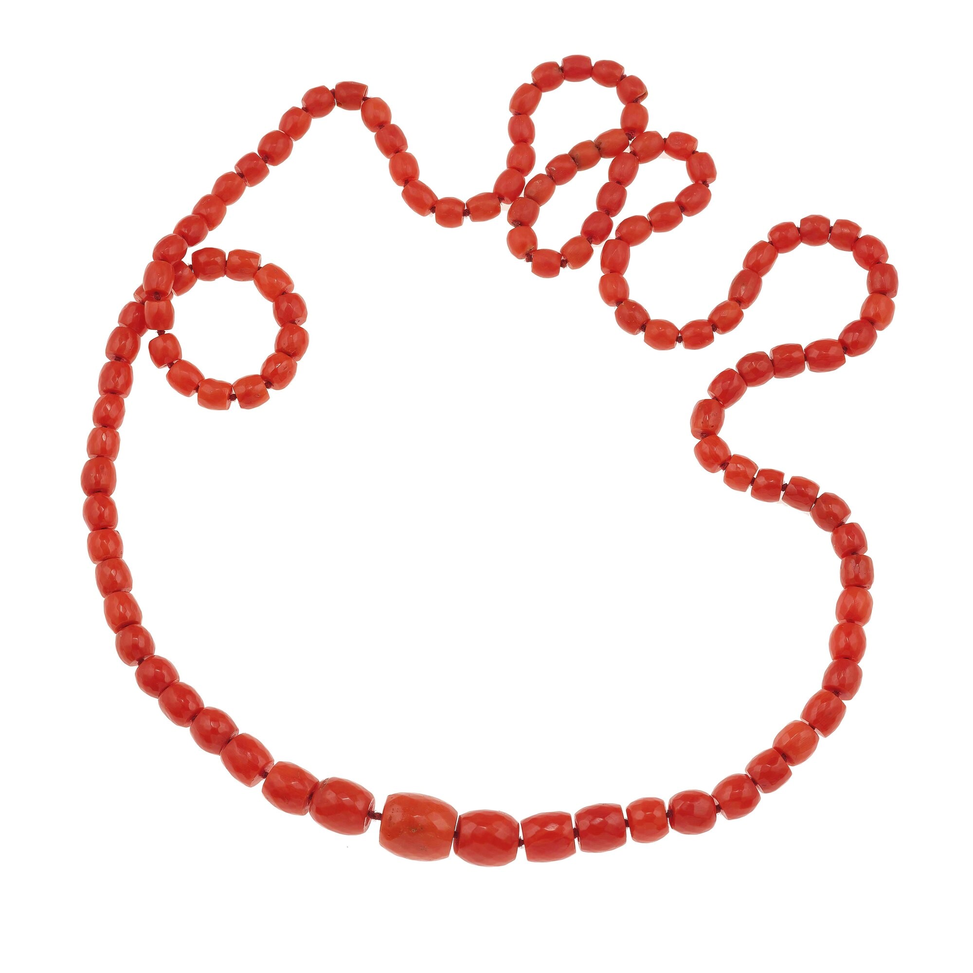 Collana con barilotti in corallo a scalare priva di fermezza, gr. 56,4 cm...
