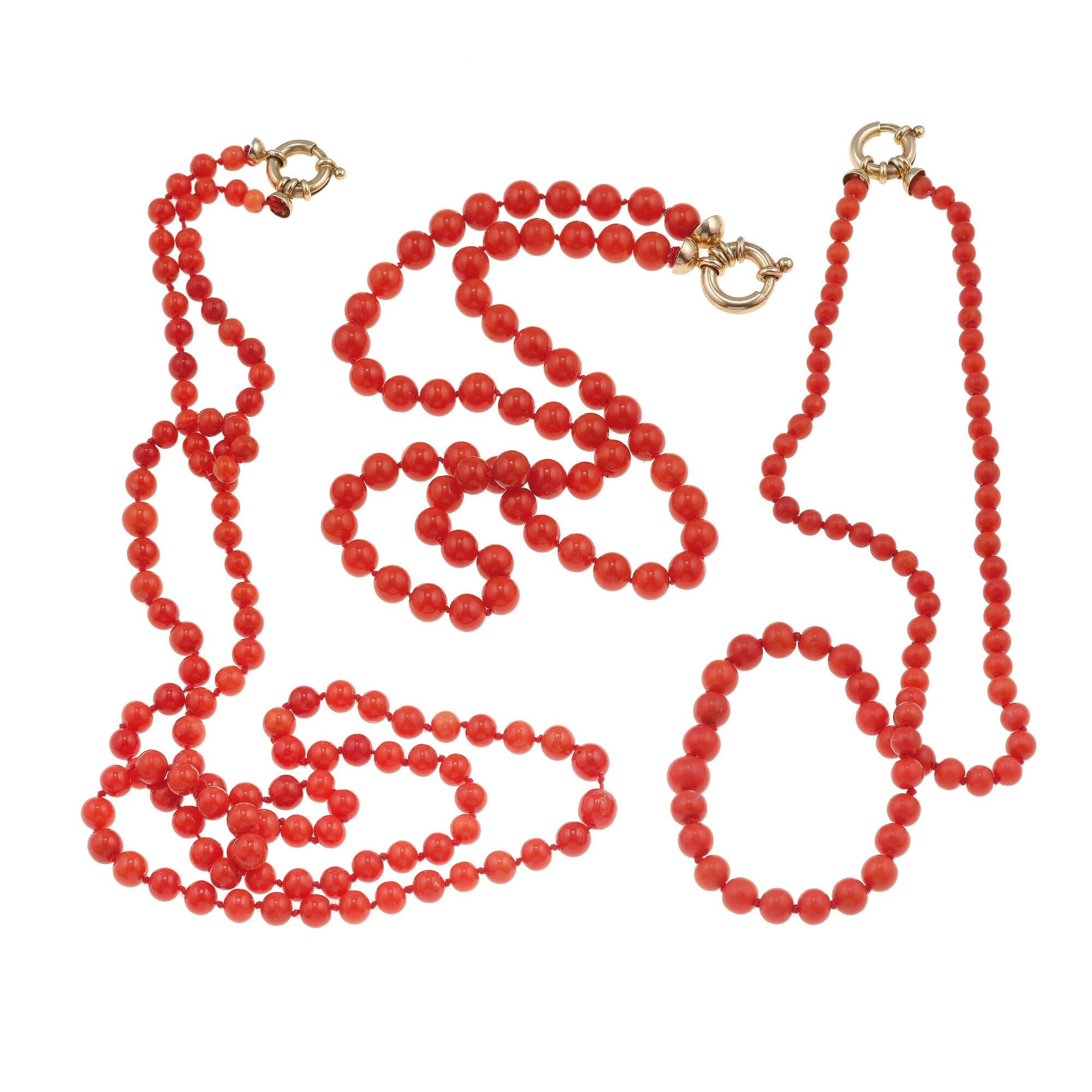 Lotto composto da tre collane di corallo