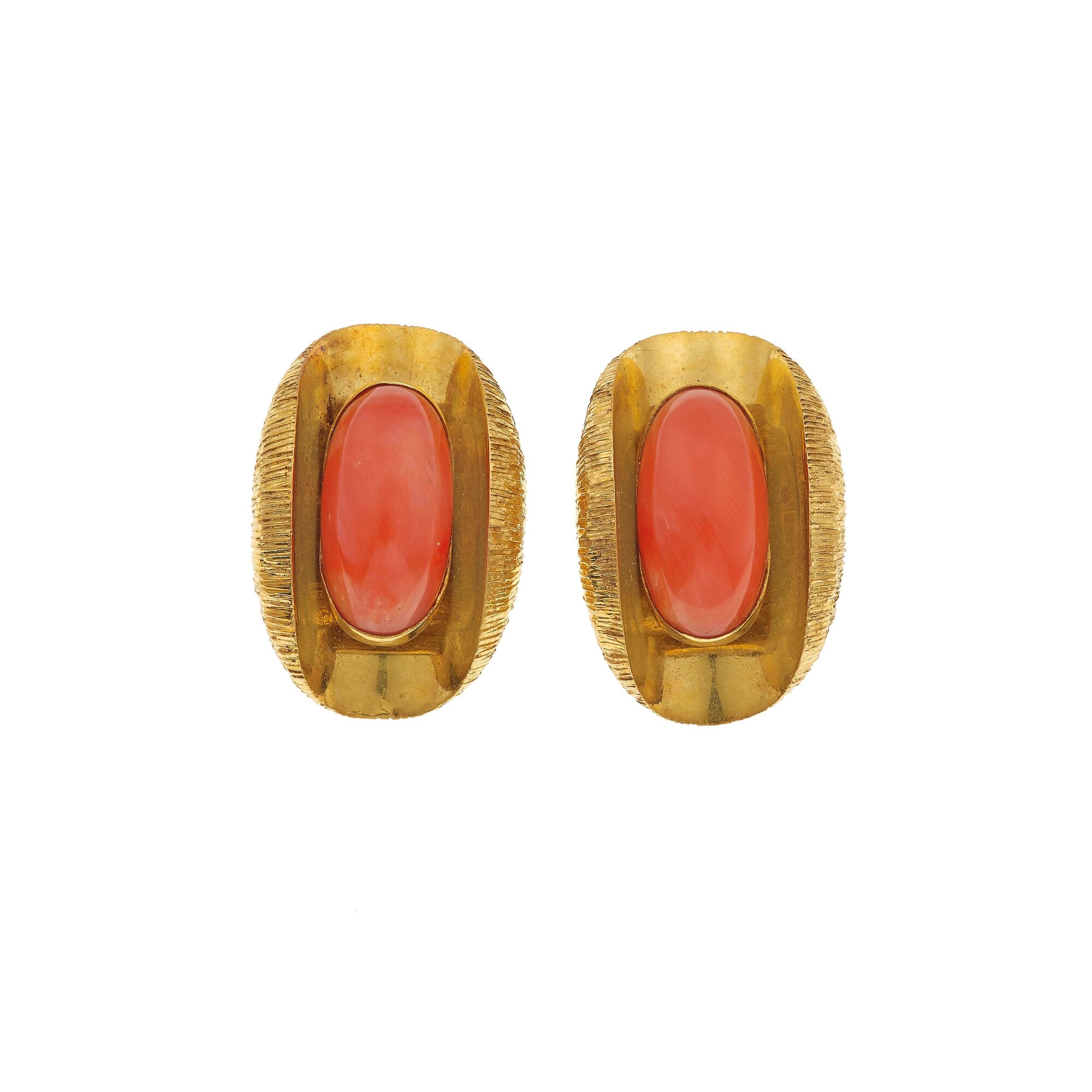 Orecchini con corallo montatura in oro giallo 750/1000, gr. 29,1 cm 3,0 x 2,1...