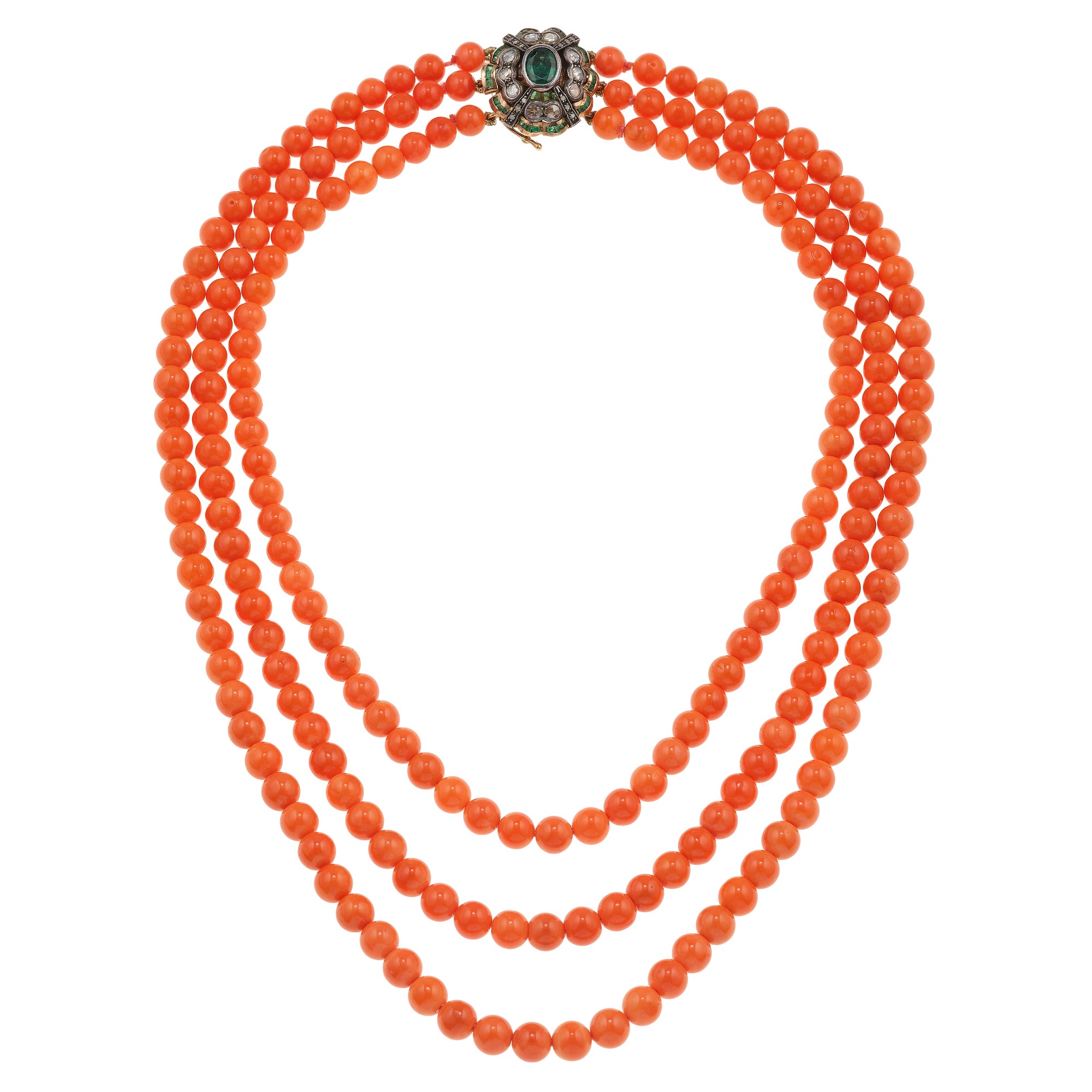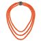 Collana a tre fili di corallo arancio fermezza in oro a basso titolo ed...
