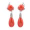 Orecchini pendenti con corallo e pavè di diamanti montatura in oro bianco...
