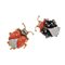 Coppia di spille 'Coccinella' con inserti in corallo e onice