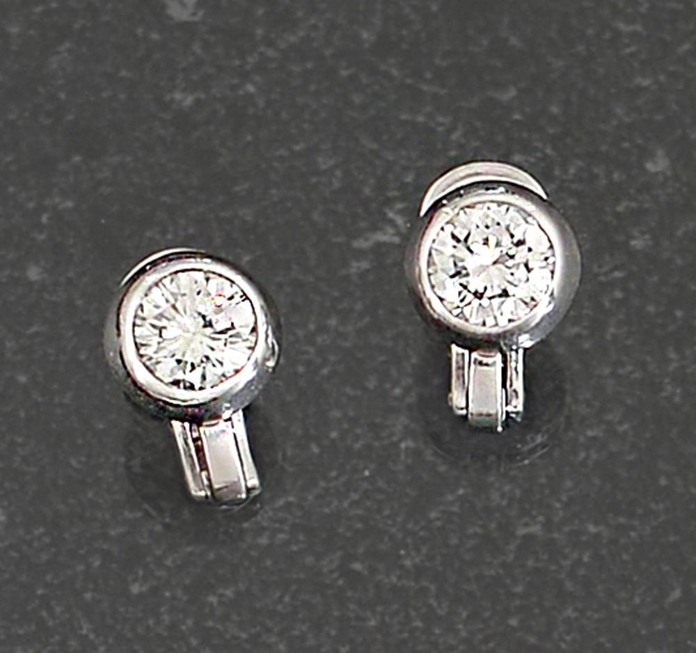 COPPIA DI ORECCHINI. In oro bianco 18 kt perno e clip con due diamanti taglio brillante per tot. cts. 3,50 ca. (prob. color J purezza VS).