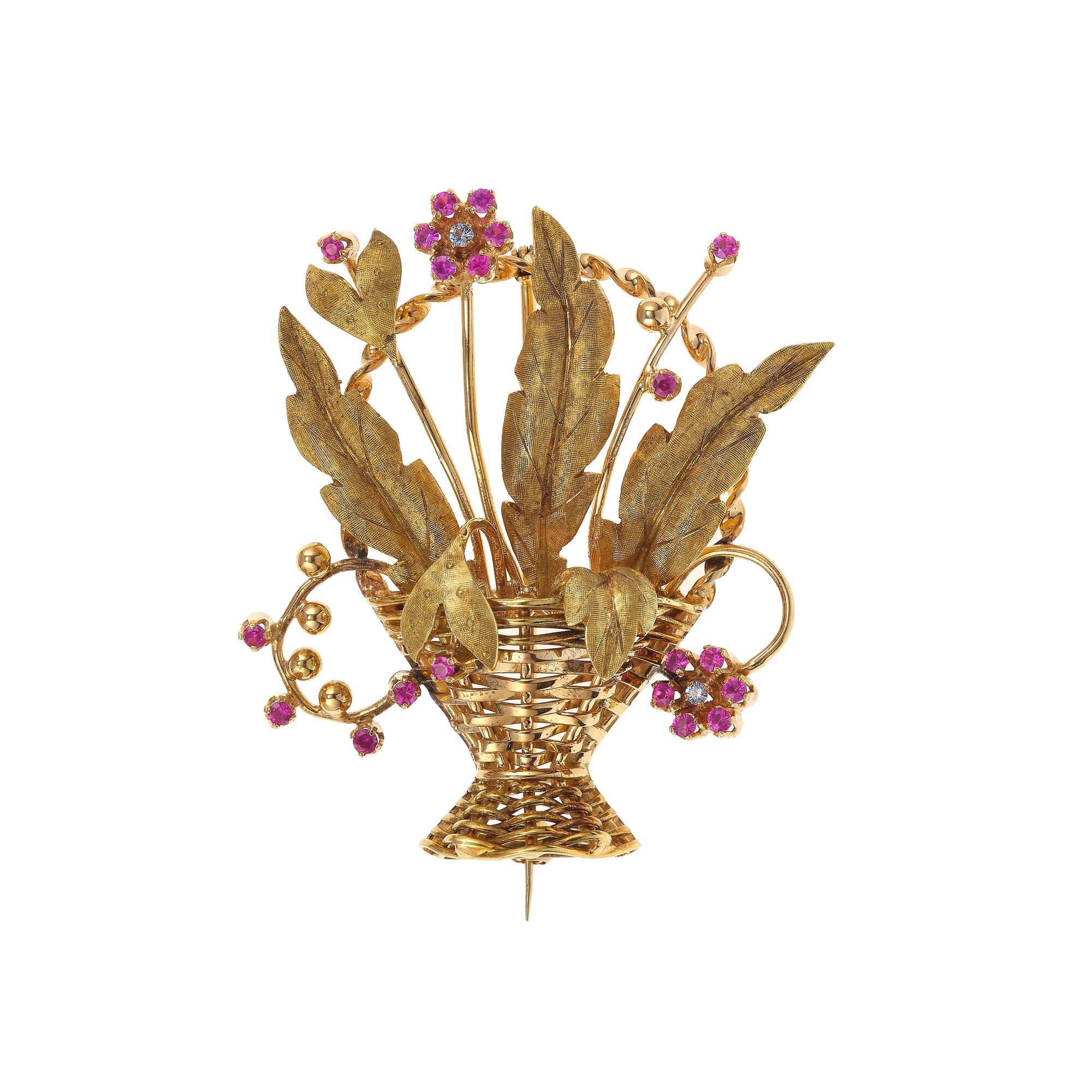 Spilla 'giardinetto' con rubini sintetici