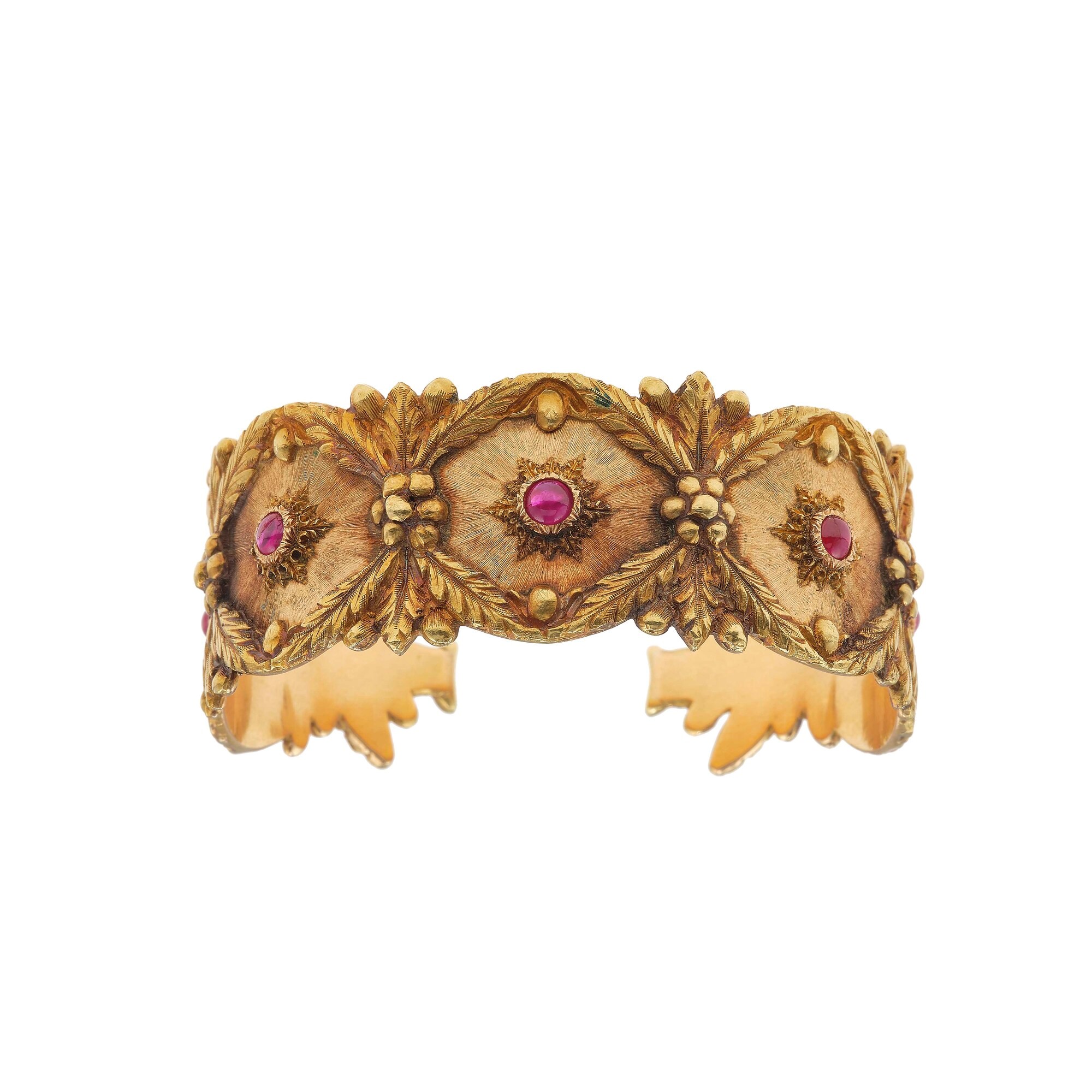 Buccellati. Bracciale rigido inciso con rubini taglio cabochon montatura in...
