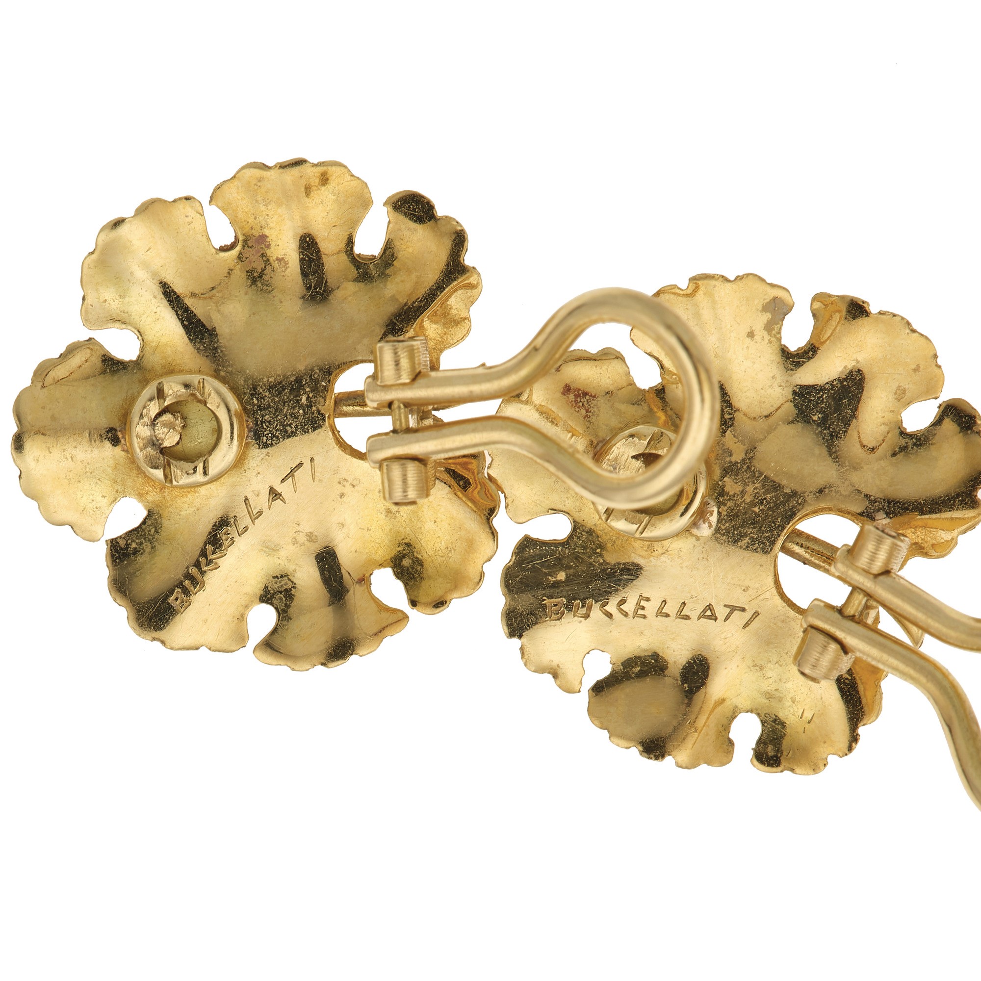 Buccellati. Orecchini 'foglie' montatura in oro giallo 750/1000, gr. 6,5...