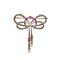 Spilla/pendente con rubini sintetici, rosette di diamante e piccole perle