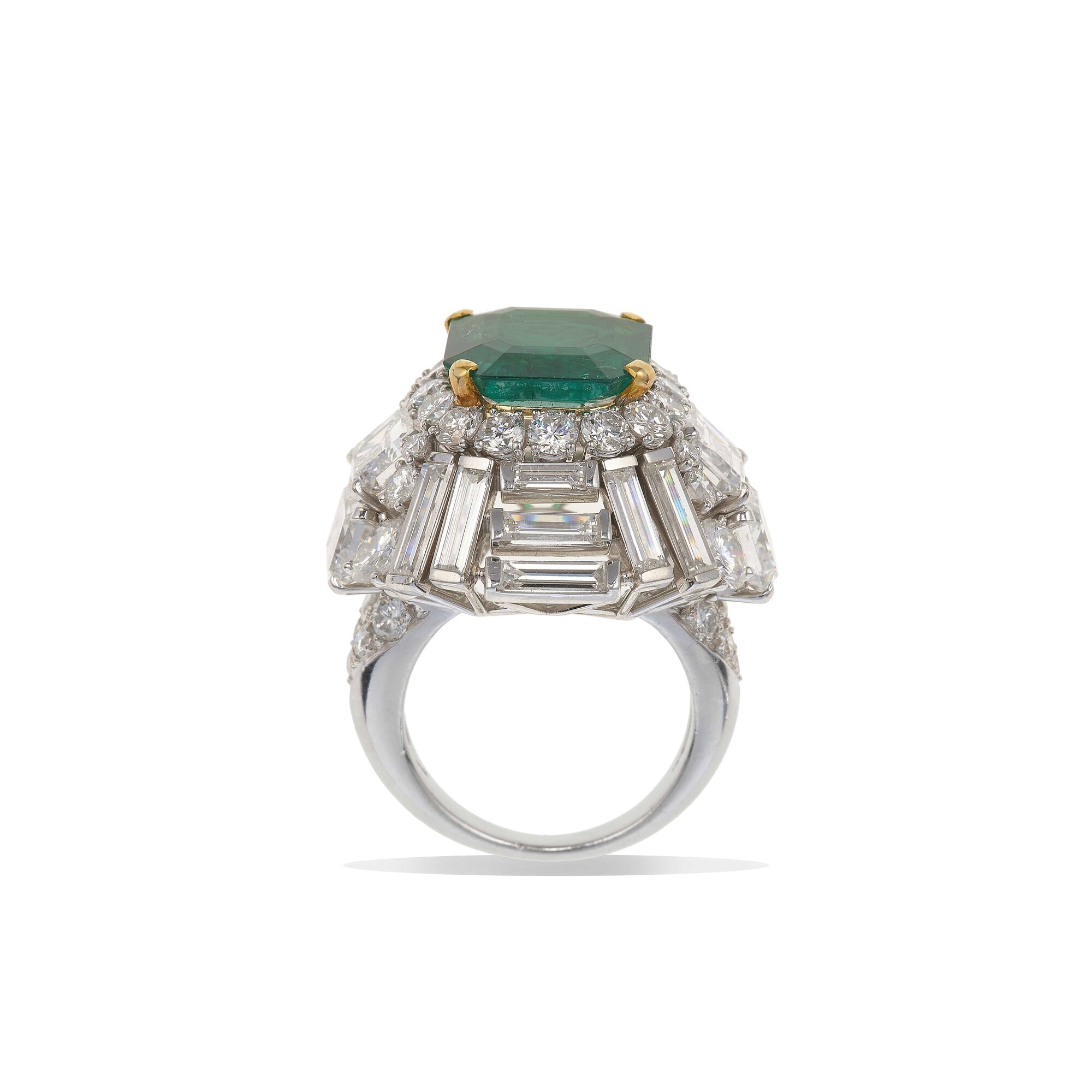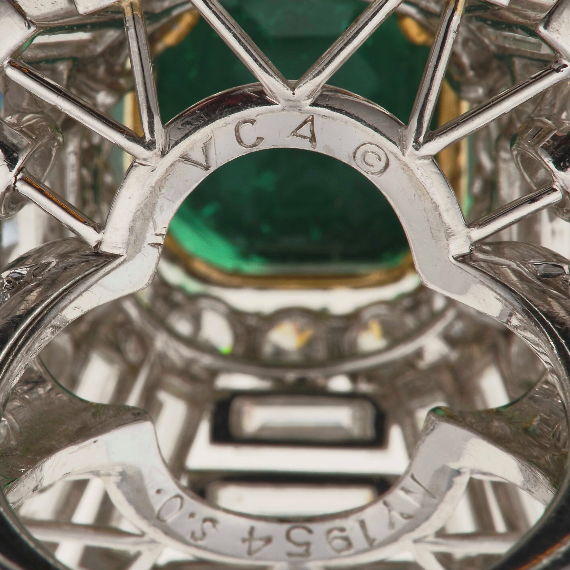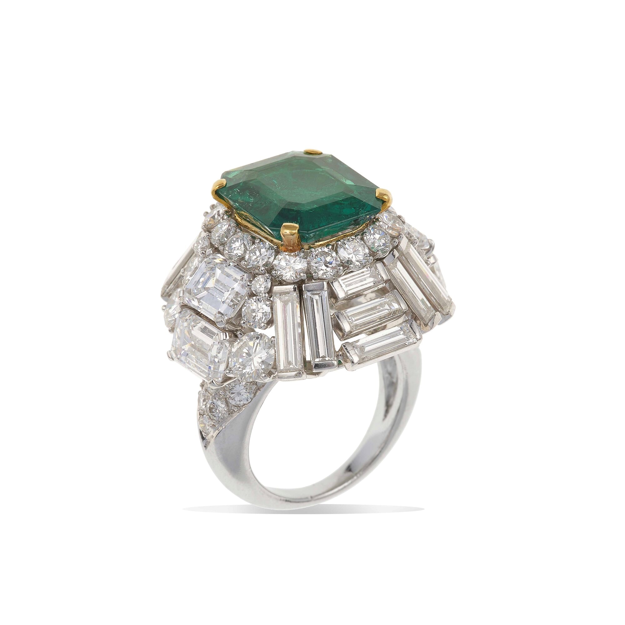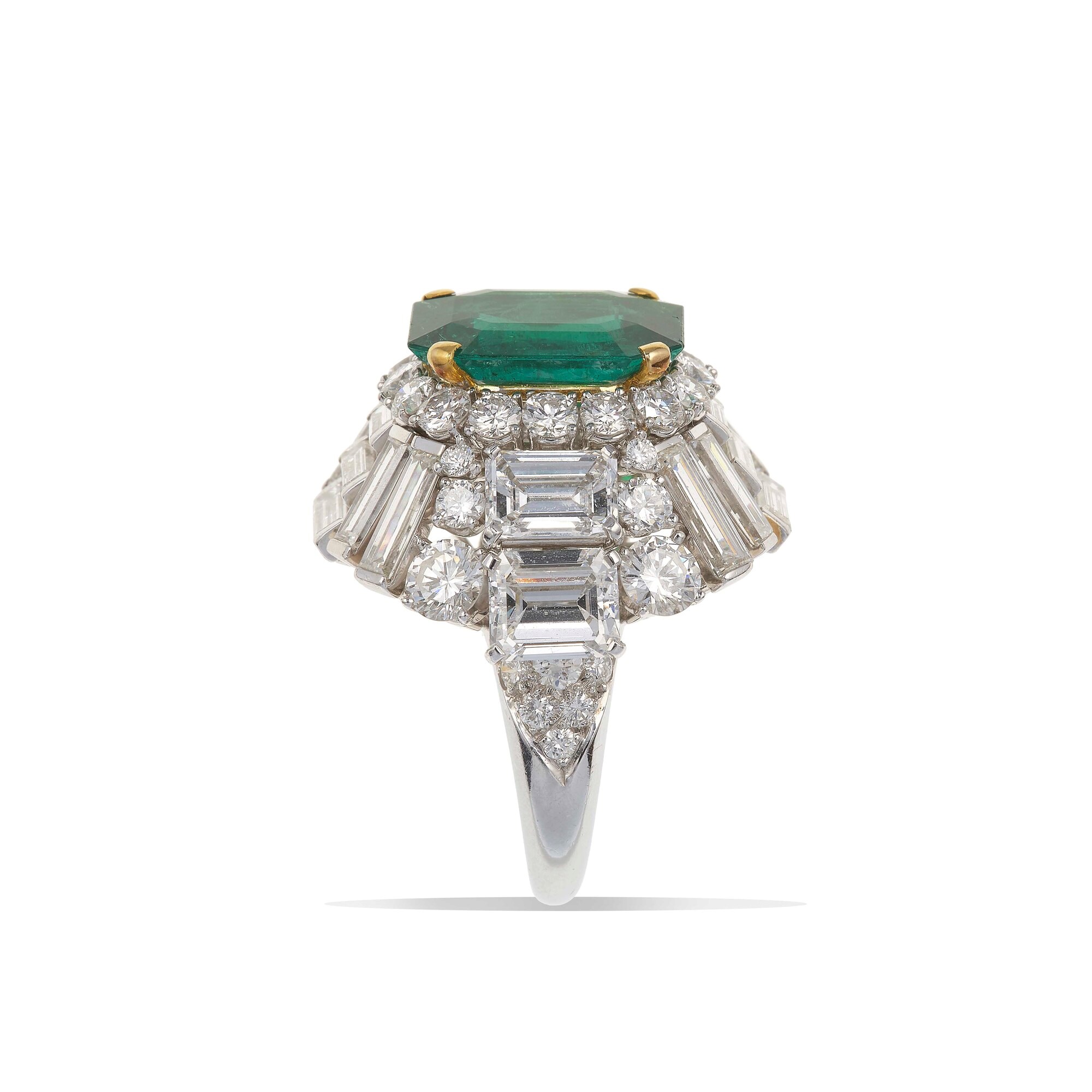 Van Cleef & Arpels. Anello con smeraldo Colombia di ct 5.20 circa, diamanti taglio smeraldo, baguette e brillante