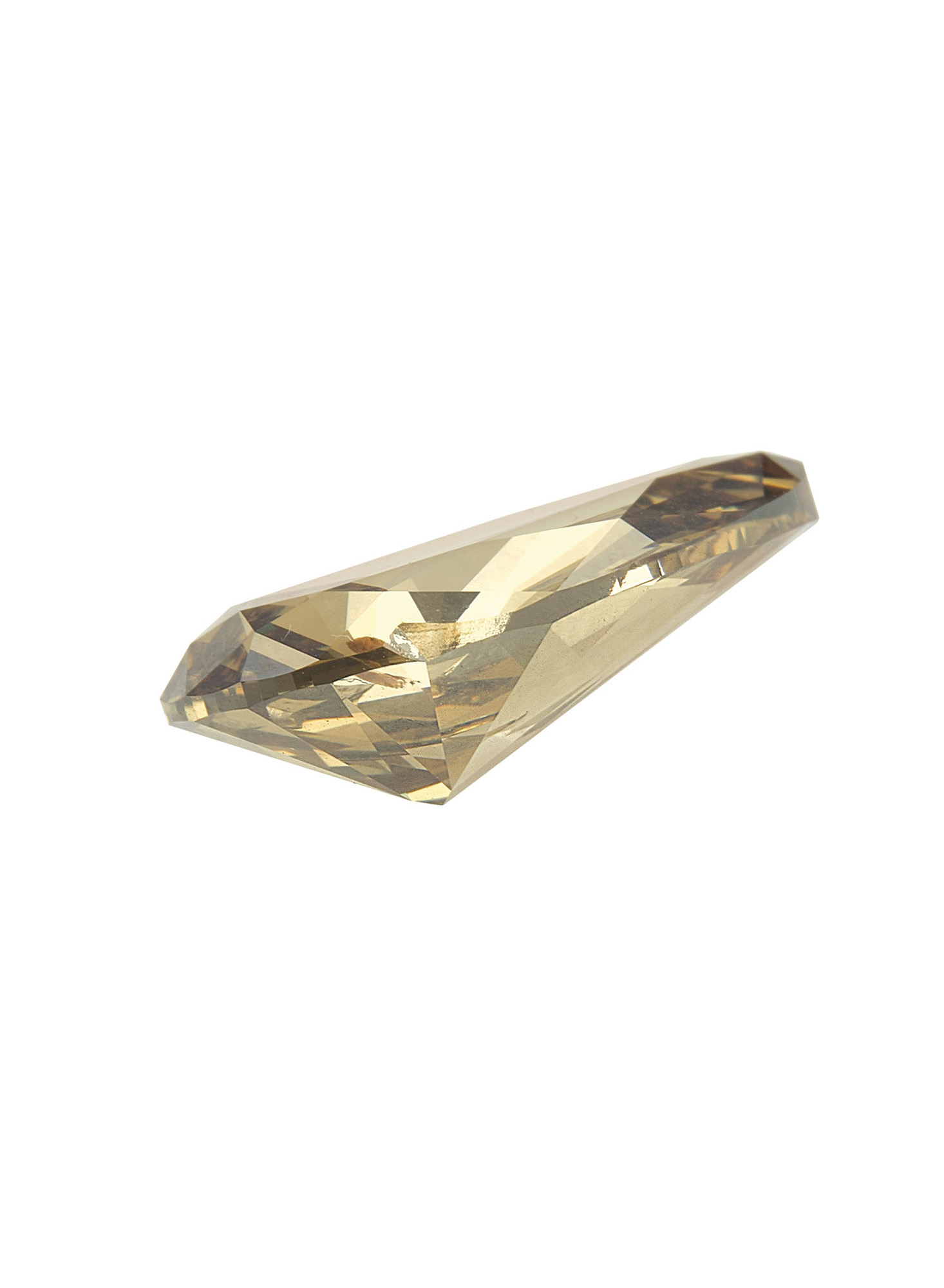 Diamante fancy yellowish brown, taglio goccia, di ct 8.04, caratteristiche interne SI2, fluorescenza UV nulla