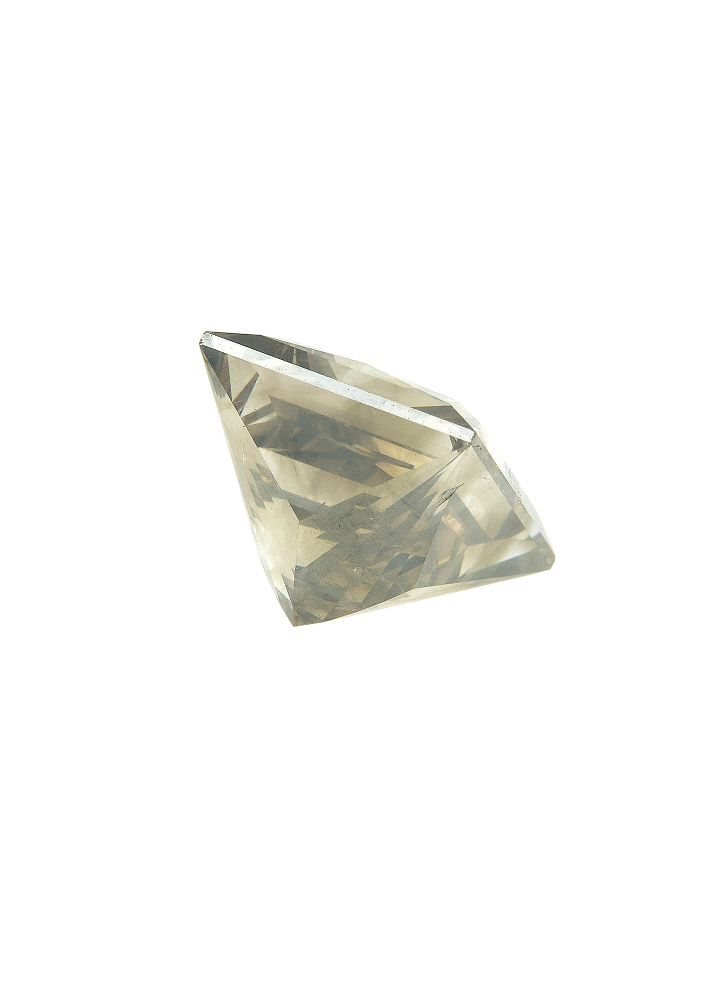 Diamante fancy greenish brown, taglio rettangolare a faccette e gradini, di ct 5.11, caratteristiche interne SI2, fluorescenza UV media