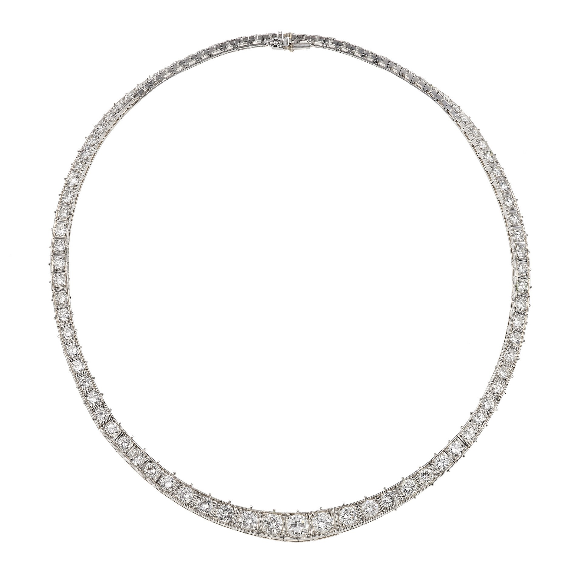 Rivière con diamanti taglio brillante per ct 18.00 circa montatura in platino...