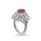 Anello con rubino Burma di ct 1.65 circa, nessuna indicazione di riscaldamento, diamanti taglio navette per ct 3.00 circa