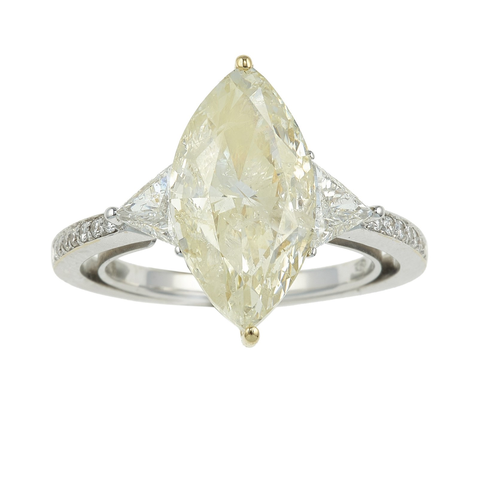 Anello con diamante taglio marquise di ct 5.08, natural fancy light yellow