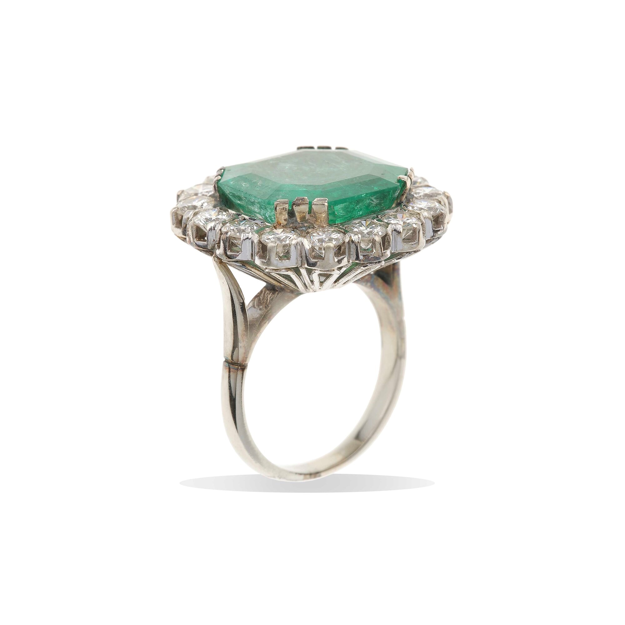 Anello con smeraldo Colombia di ct 7.45 circa e diamanti per ct 2.08 circa
