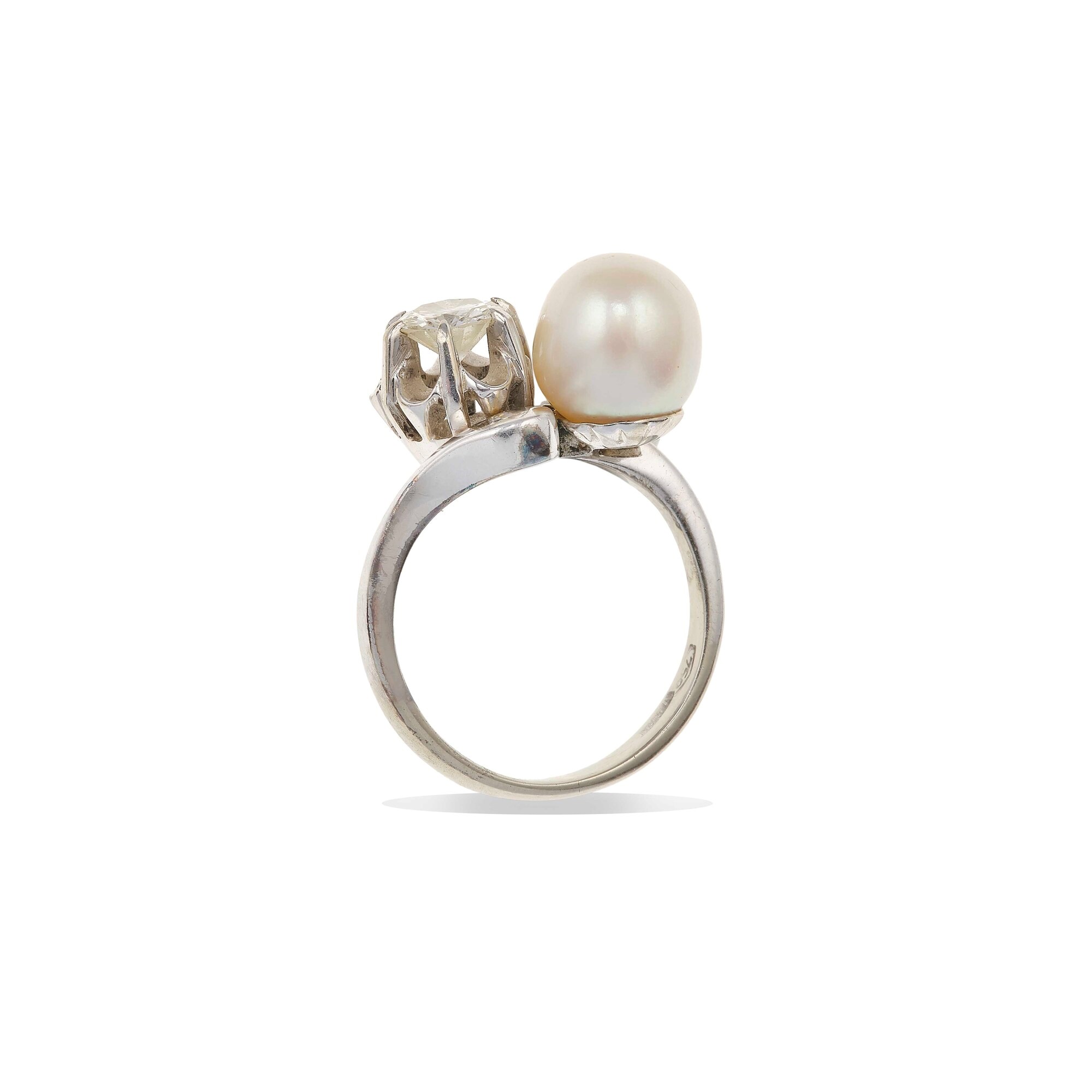 Anello con perla coltivata e diamante taglio brillante montatura in oro...