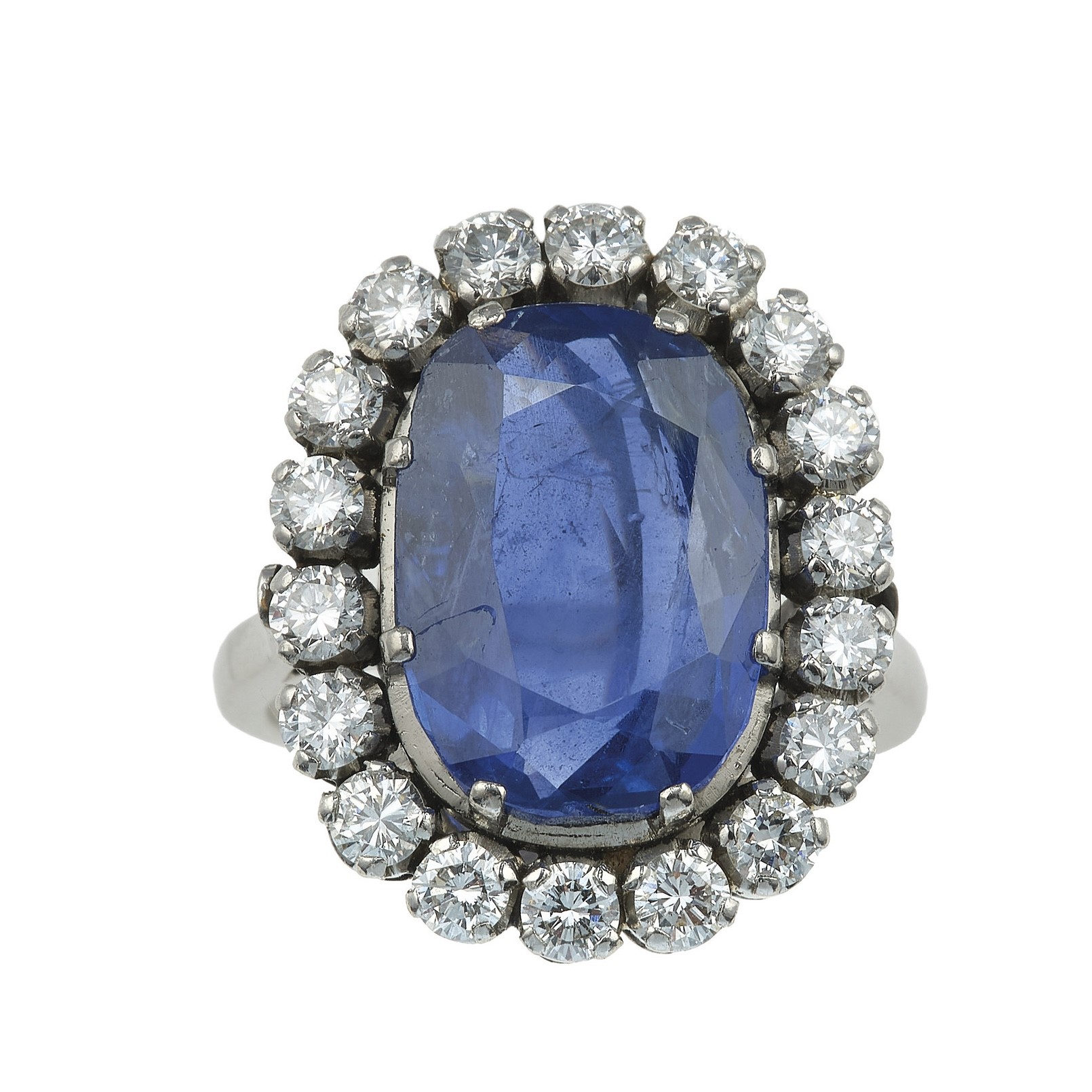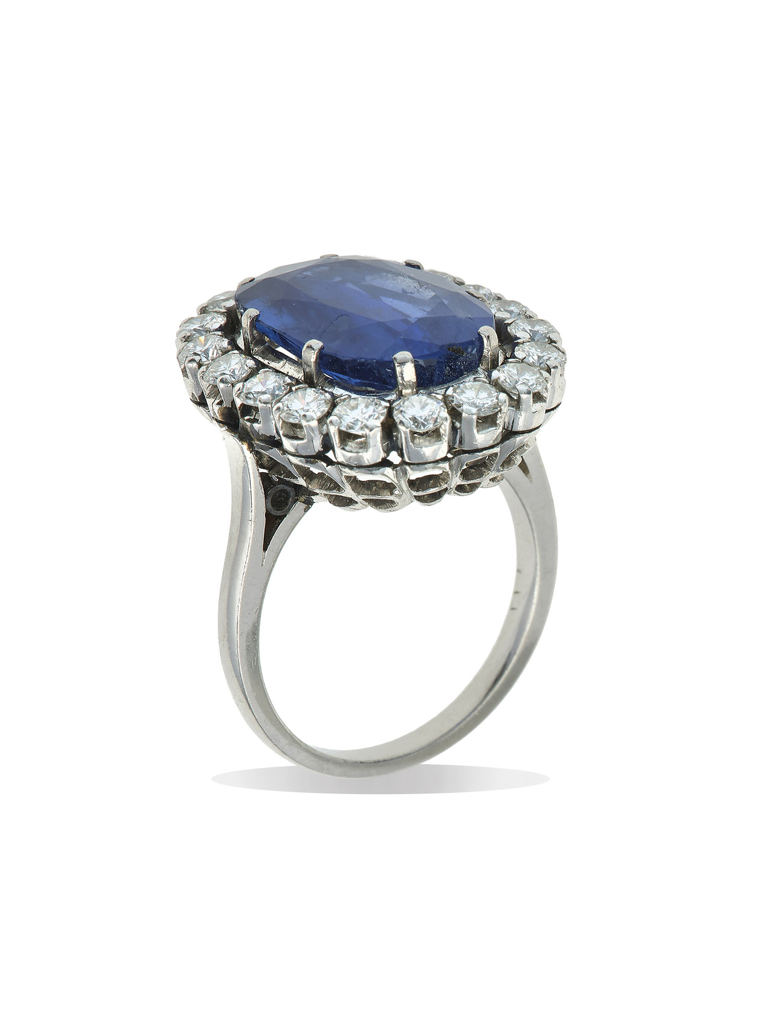 Anello con zaffiro Sri Lanka di ct 7.20 circa e diamanti a contorno