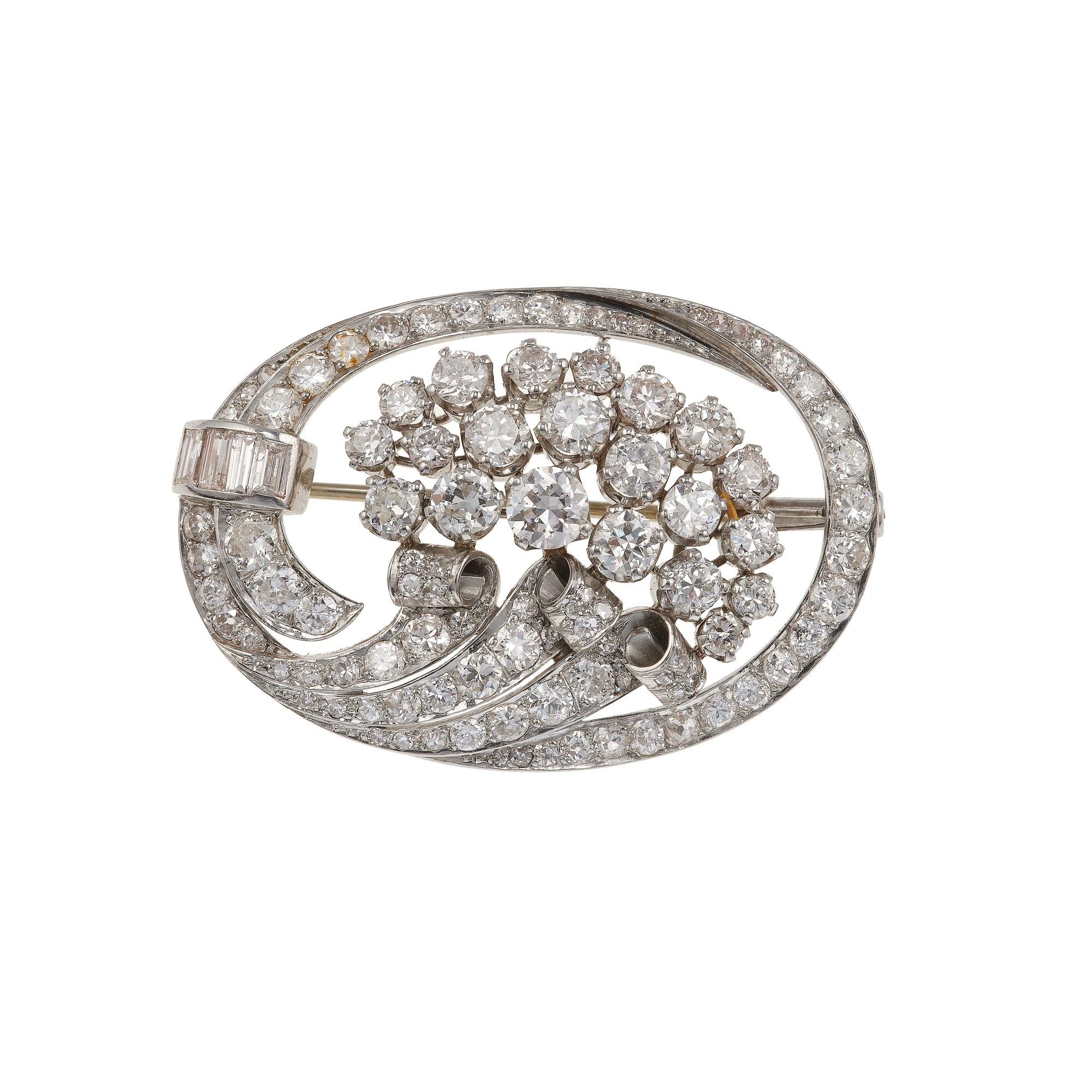 Spilla 'cornucopia' con diamanti taglio brillante e huit-huit montatura in...