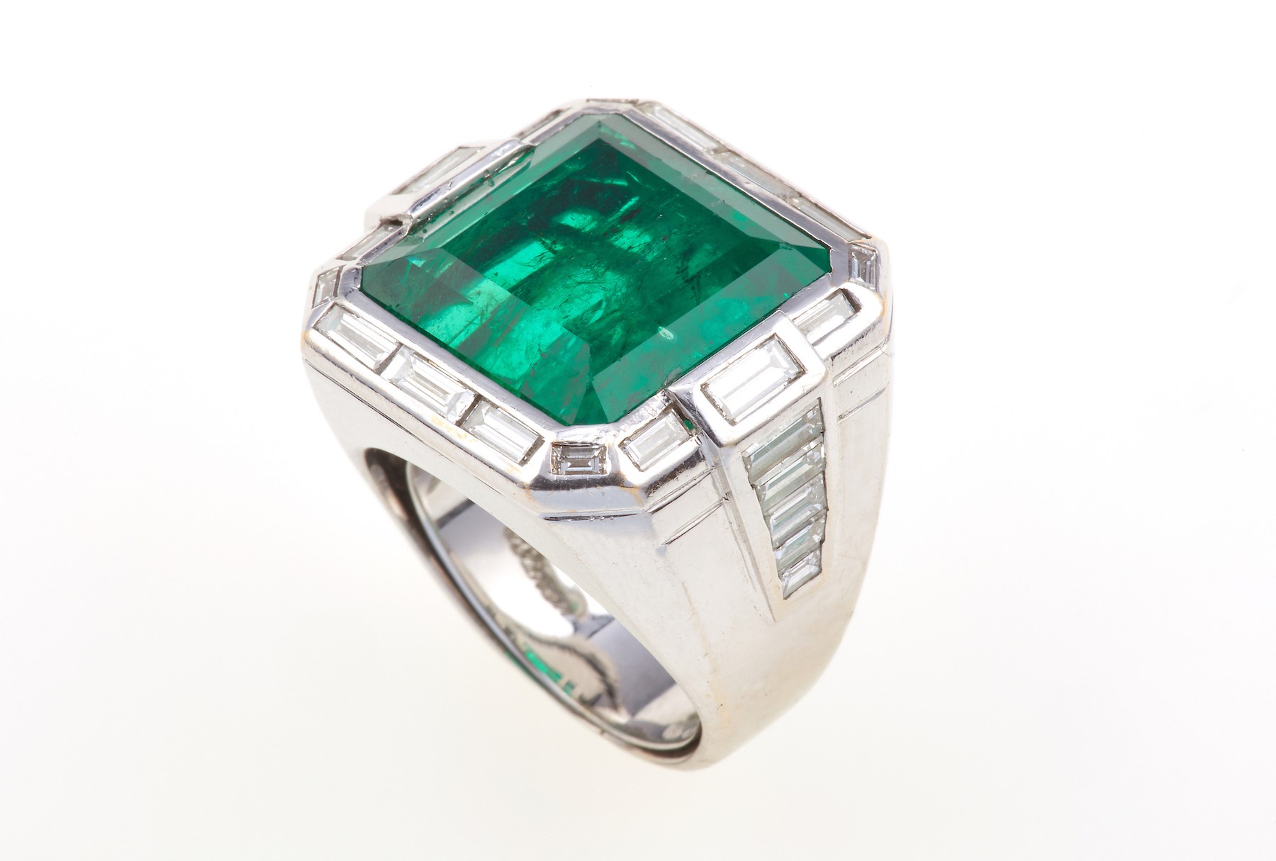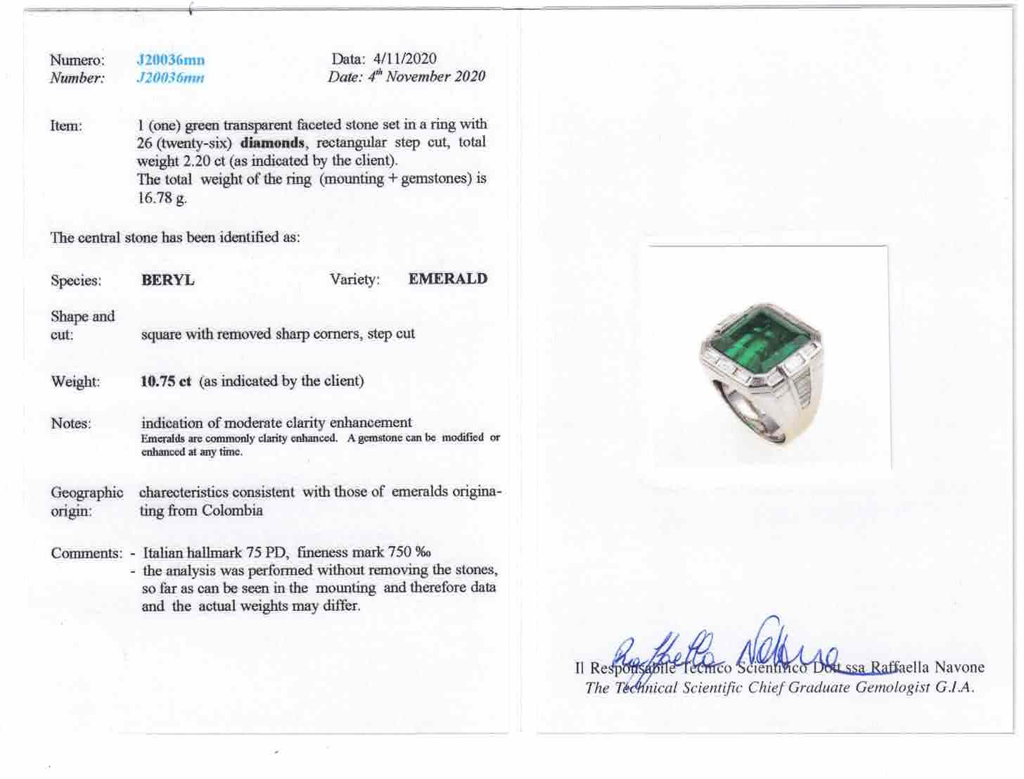 Anello con smeraldo Colombia di ct 10.00 circa montatura in oro bianco...
