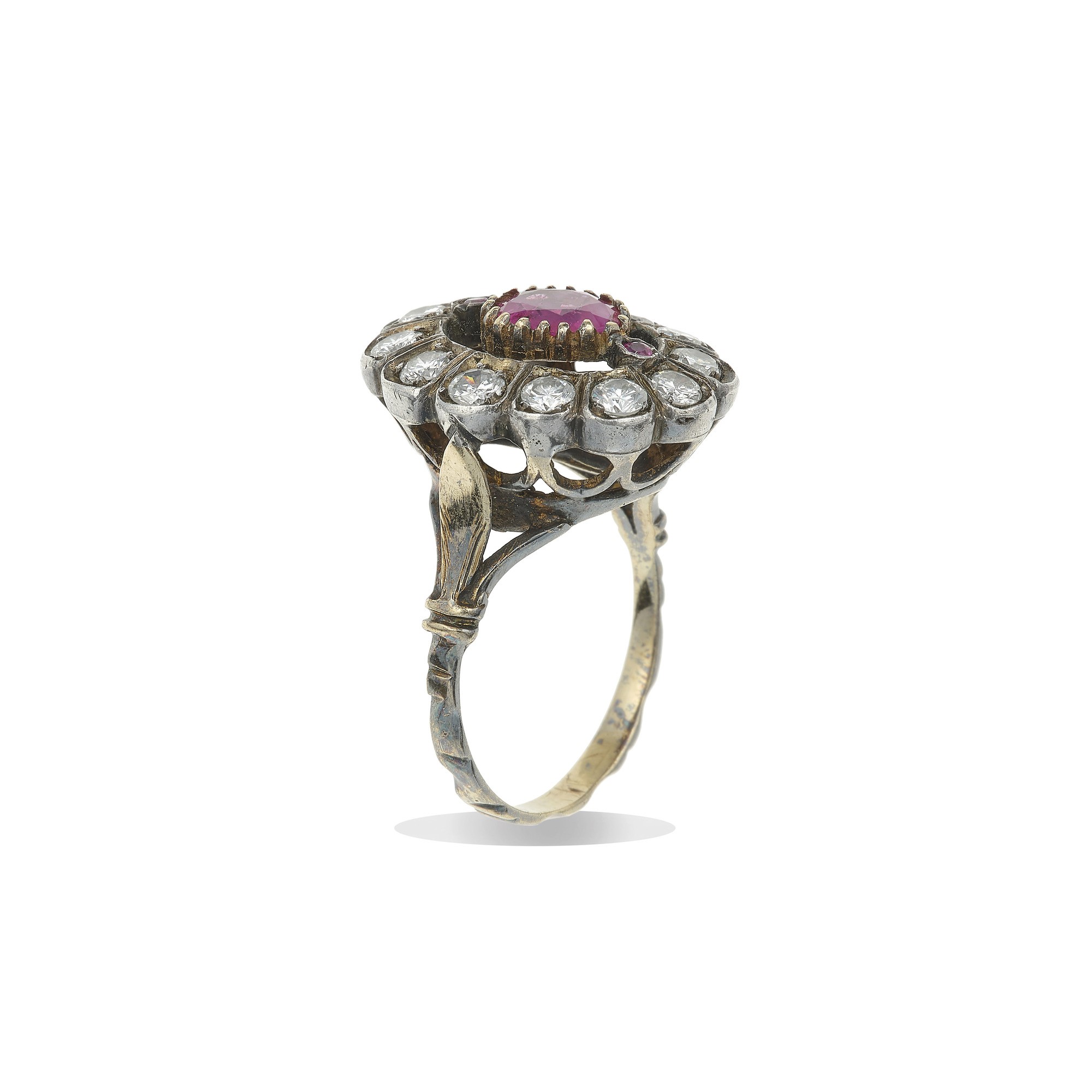 Anello con rubino Burma e diamanti taglio brillante