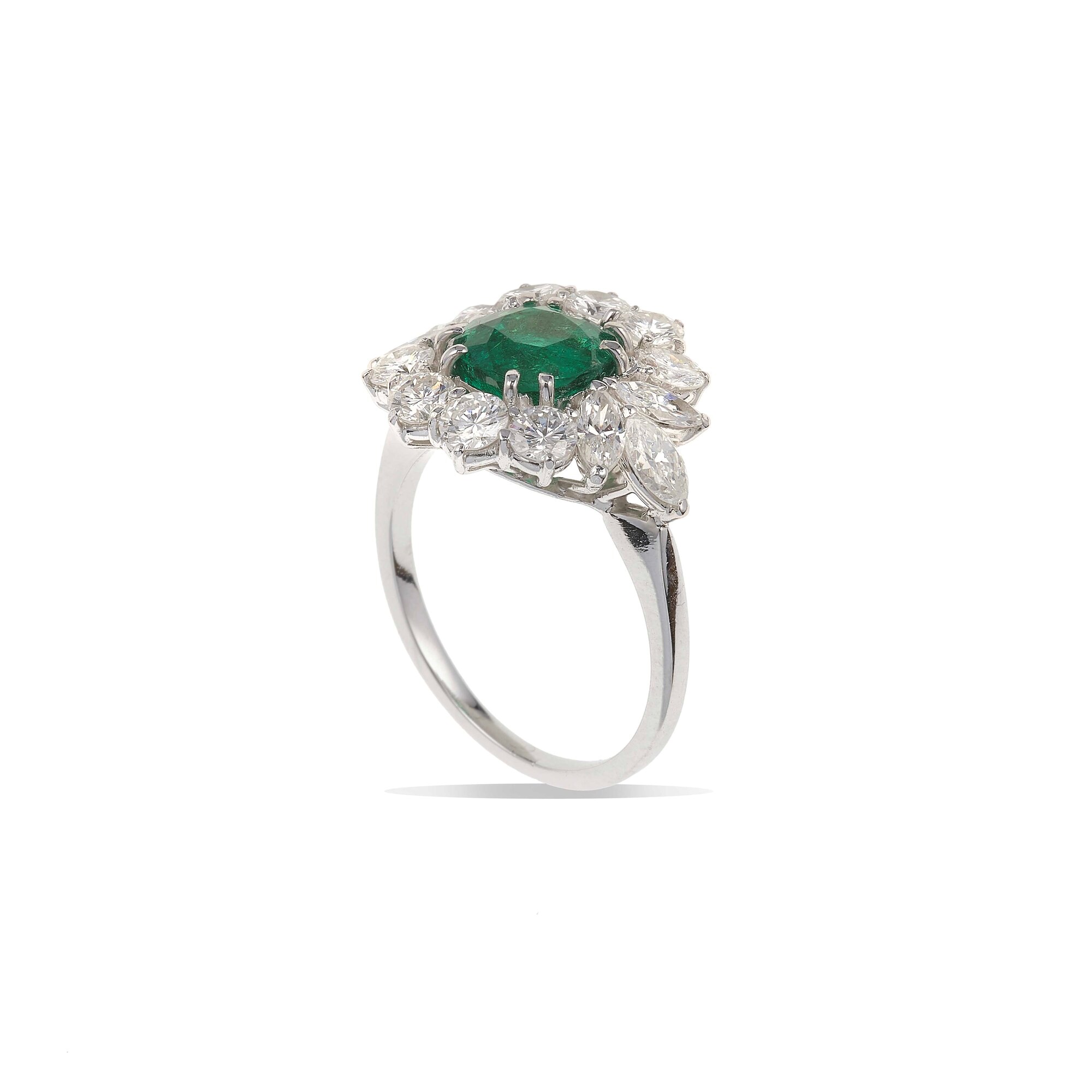 Anello con smeraldo di ct 1.92 e diamanti per ct 2.00 circa
