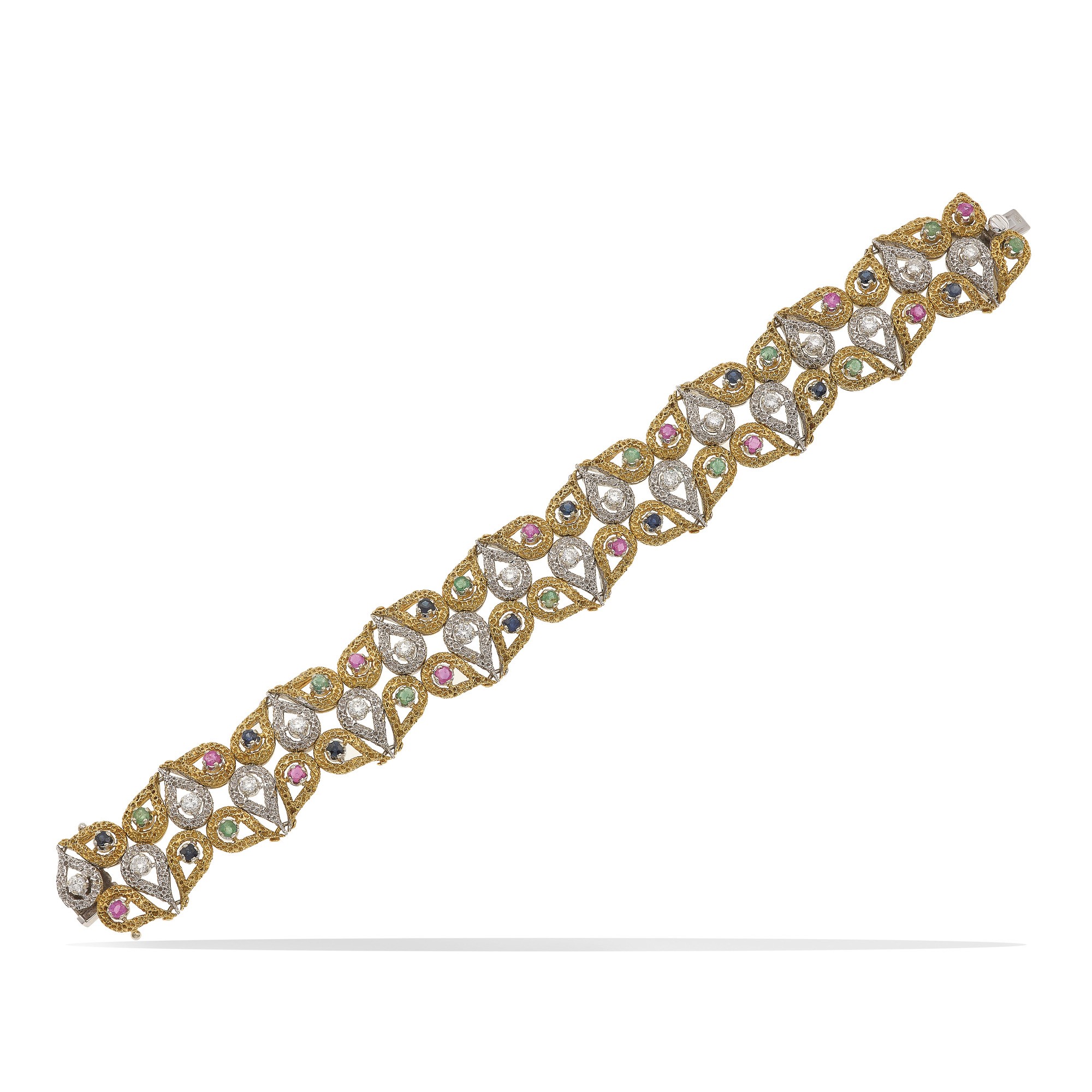 Bracciale con diamanti, zaffiri, smeraldi e rubini