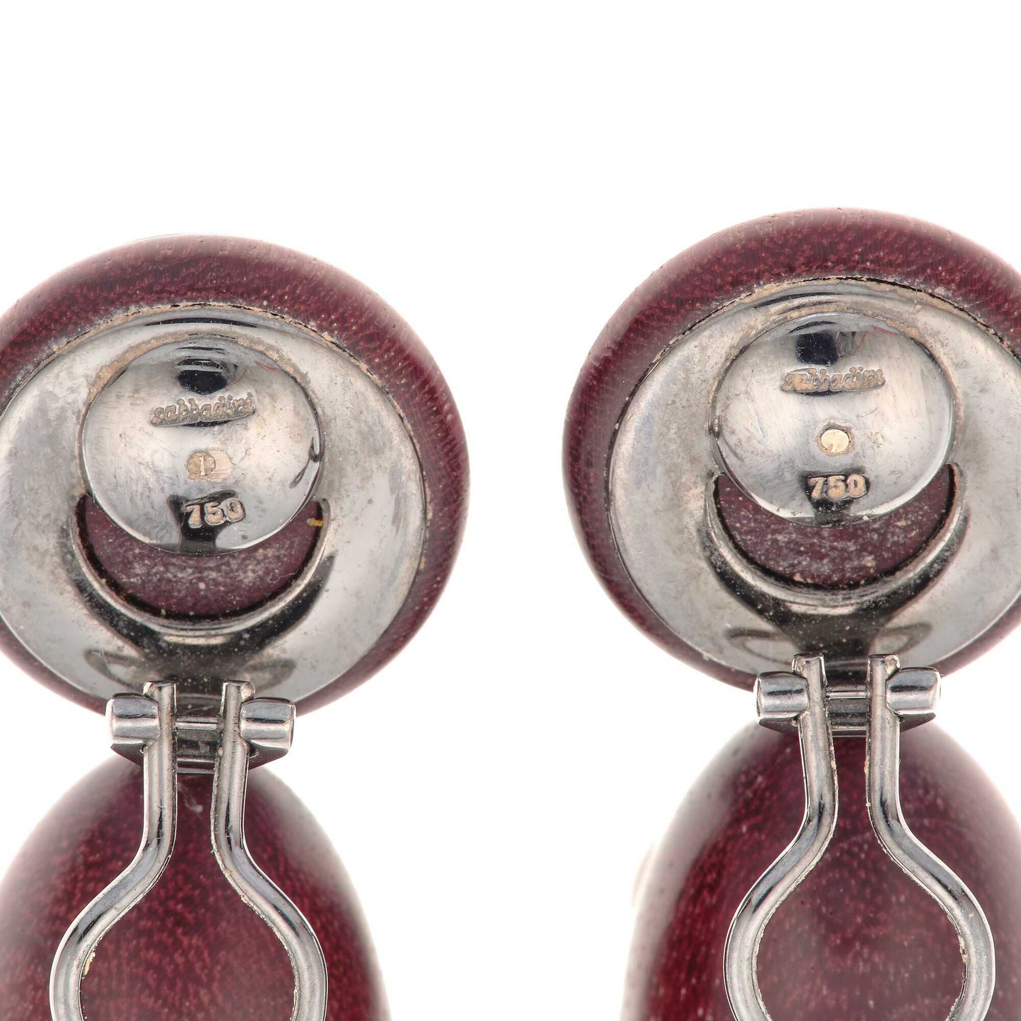 Sabbadini. Orecchini pendenti com ametista taglio cabochon e legno montatura...
