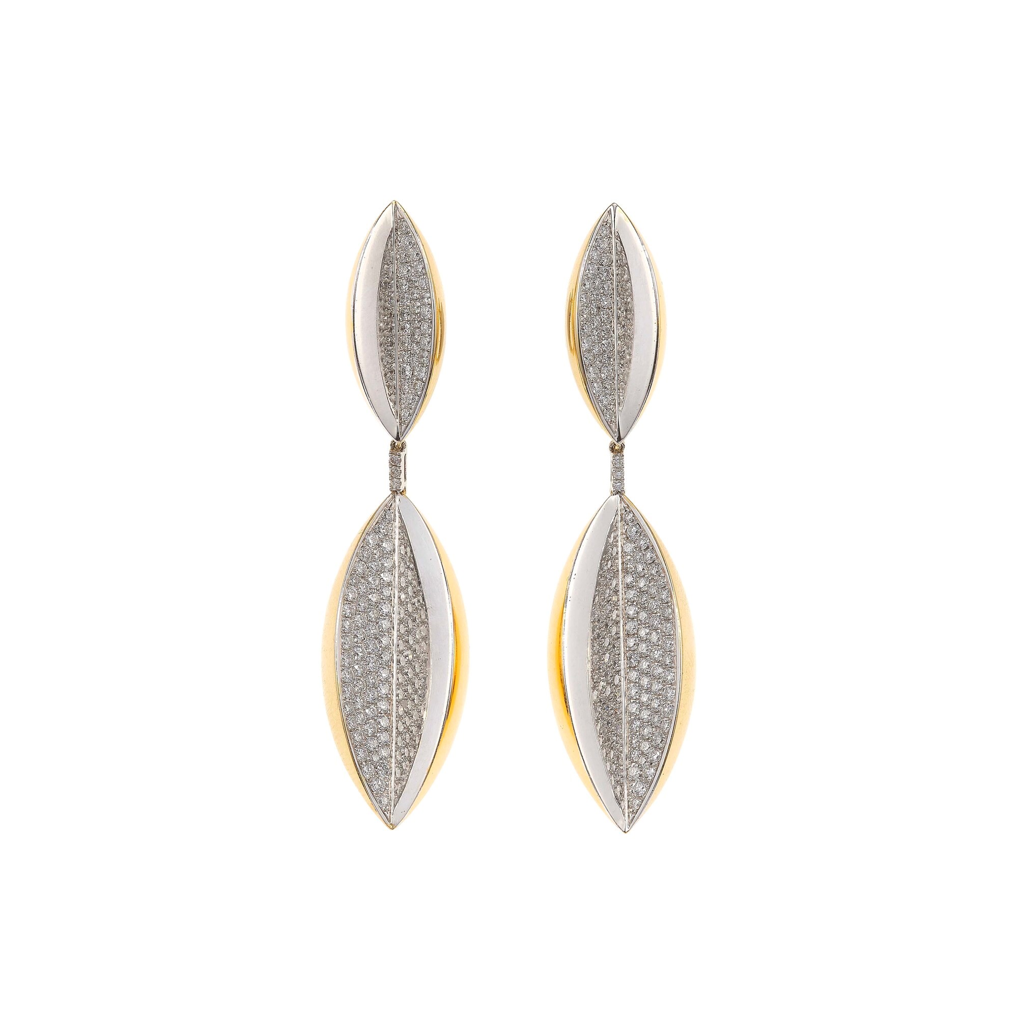 Cusi. Orecchini pendenti con pavè di diamanti montature in oro giallo ed oro...