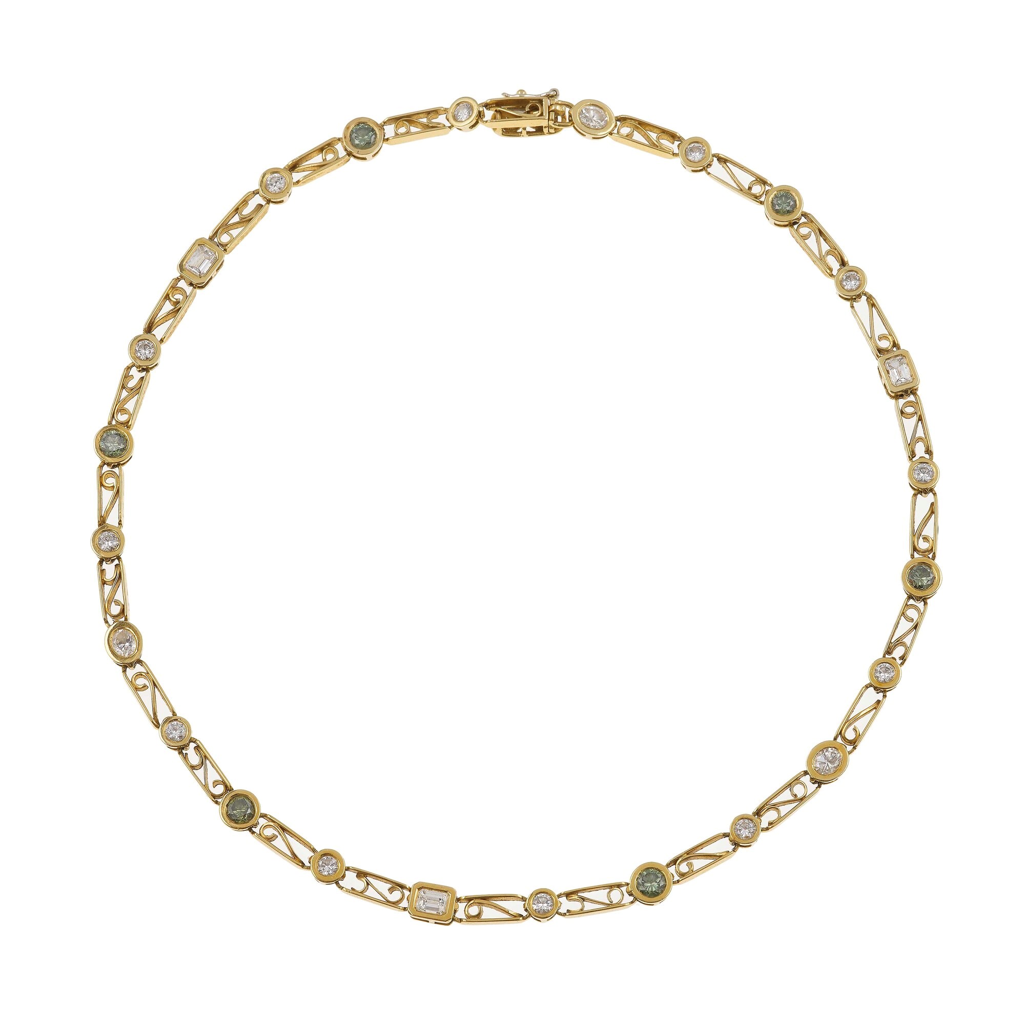 Girocollo con diamanti bianchi e diamanti verdi irradiati montatura in oro...