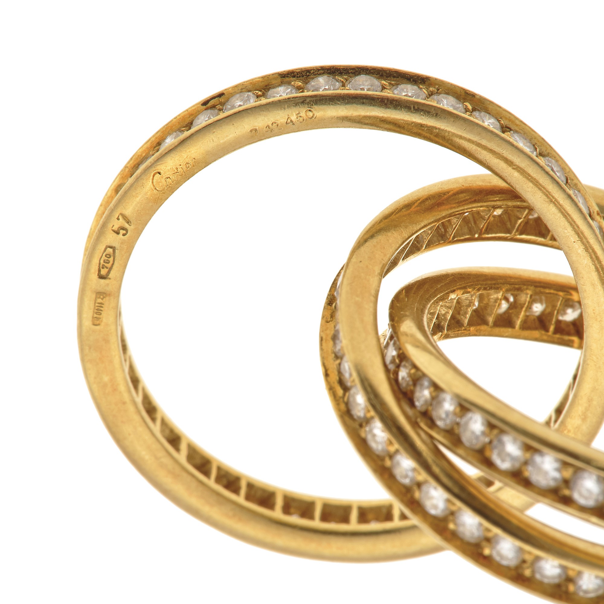 Anello “Trinity” con diamanti montatura in oro giallo 750/1000. Inciso...