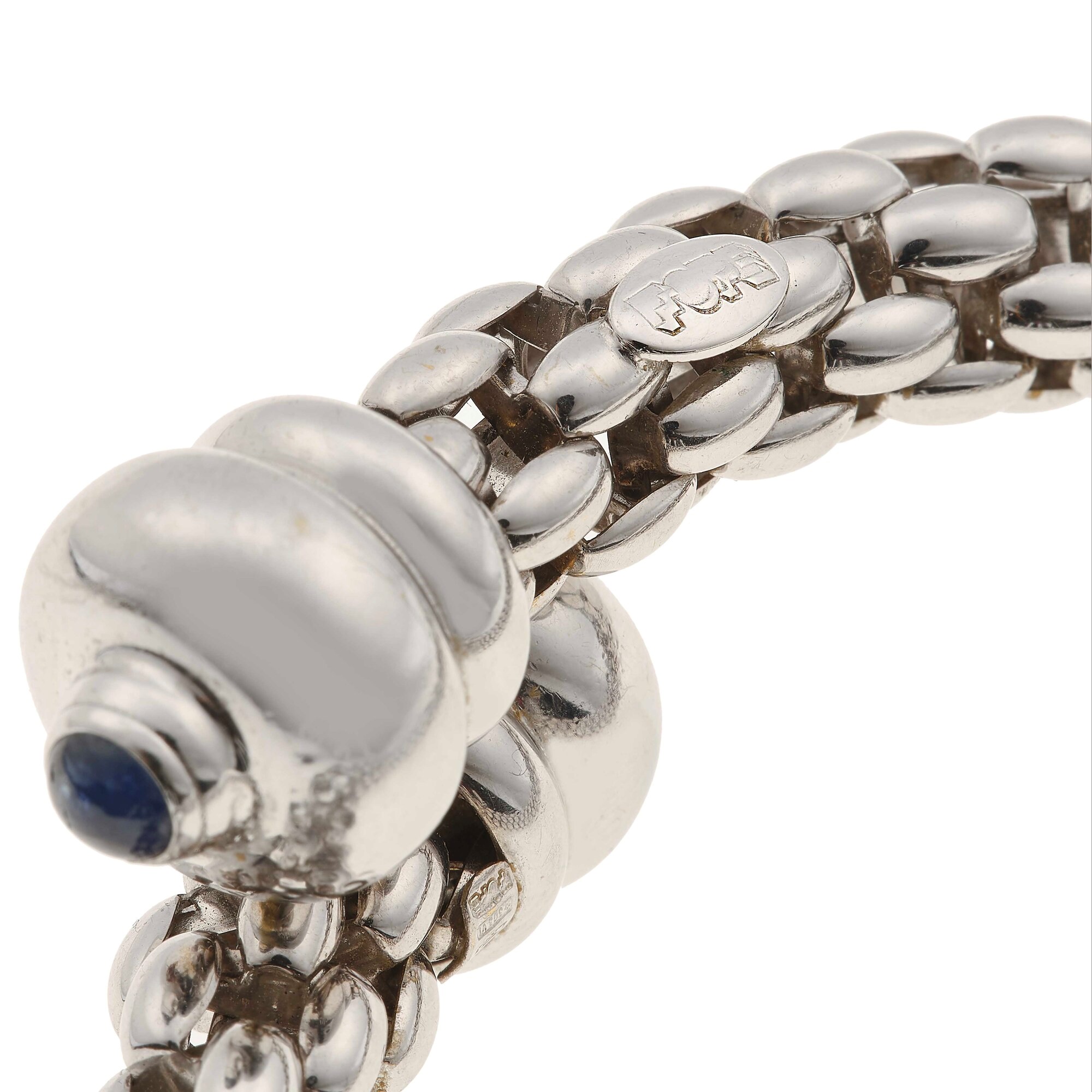 Fope. Bracciale rigido con due piccoli zaffiri taglio cabochon