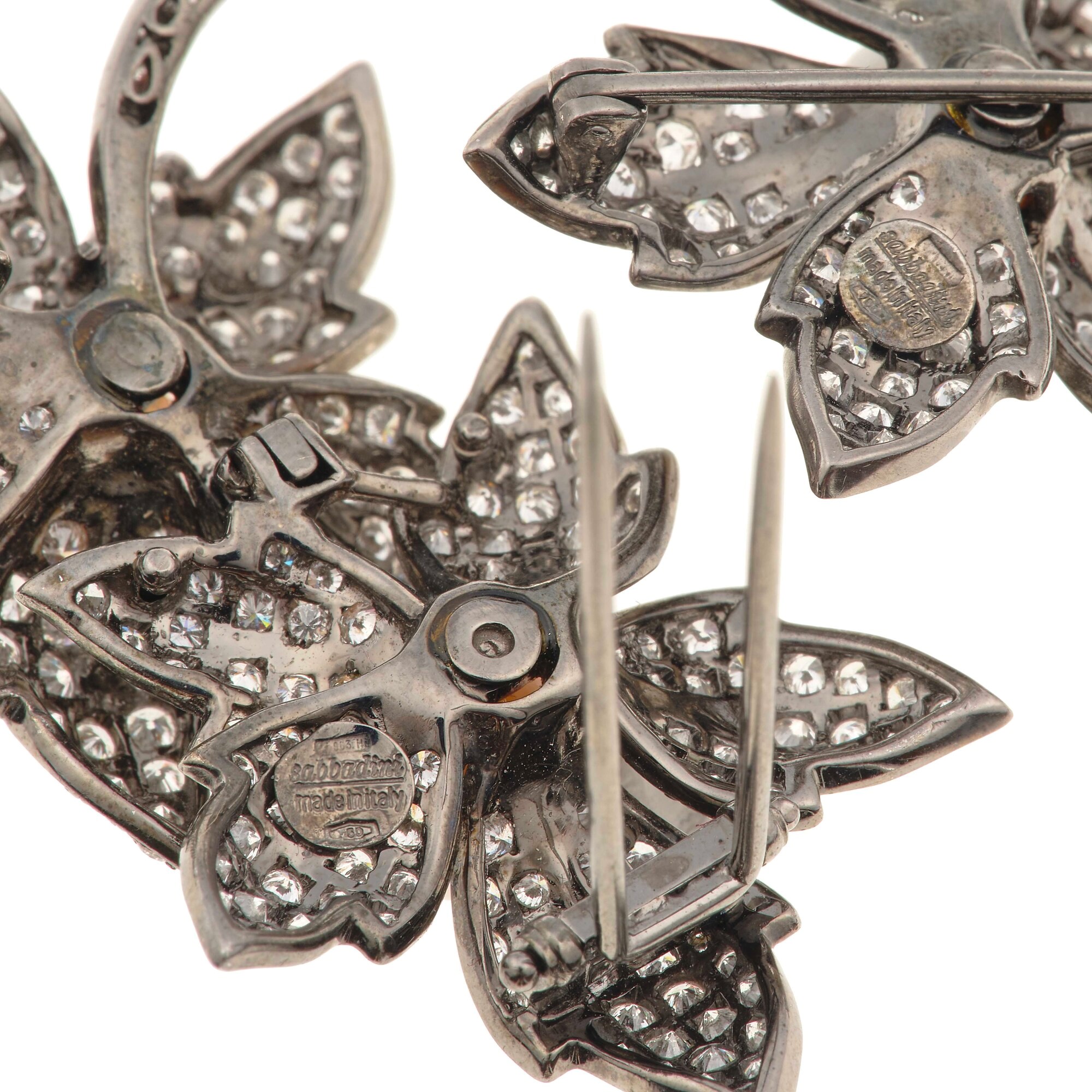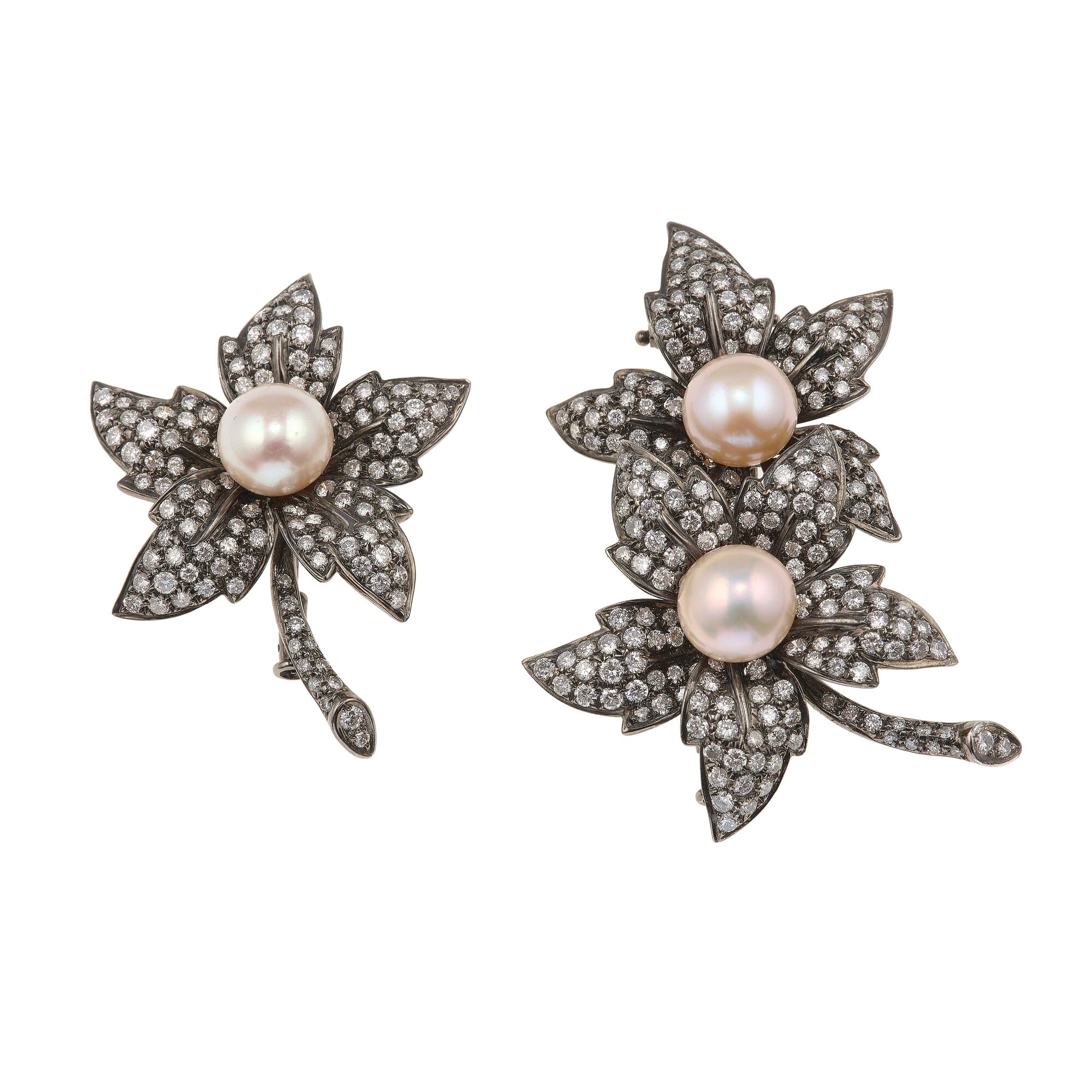 Sabbadini. Coppia di spille con diamanti e perle coltivate