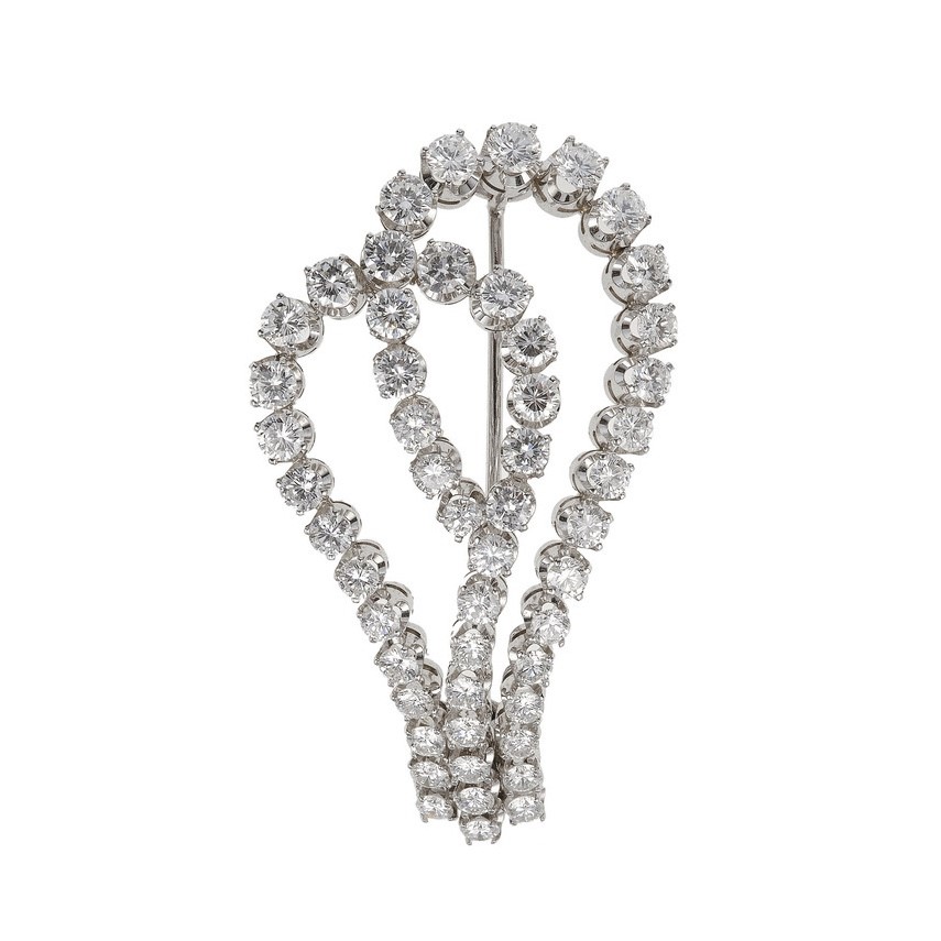 Spilla con diamanti taglio brillante montatura in oro bianco 750/1000, gr....