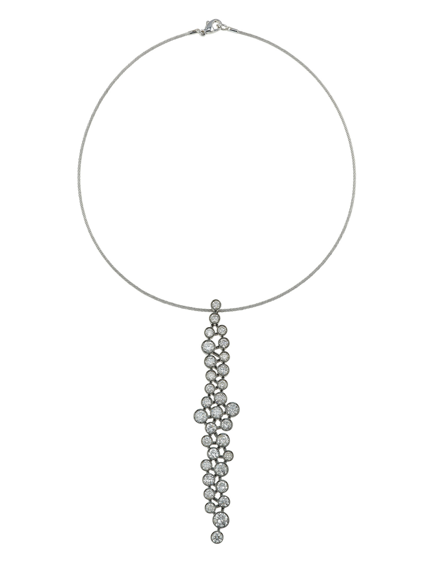 montatura in oro 750/1000, brunito. Girocollo in acciaio con fermezza in oro bianco 750/1000, *, gr. 34,0 cm 41,0 pendant cm 10,6 x 2,0 https://drive.google.com/drive/folders/1_awEfLiDYO1yiZ0HBd4yfK4TrHaFkdRF