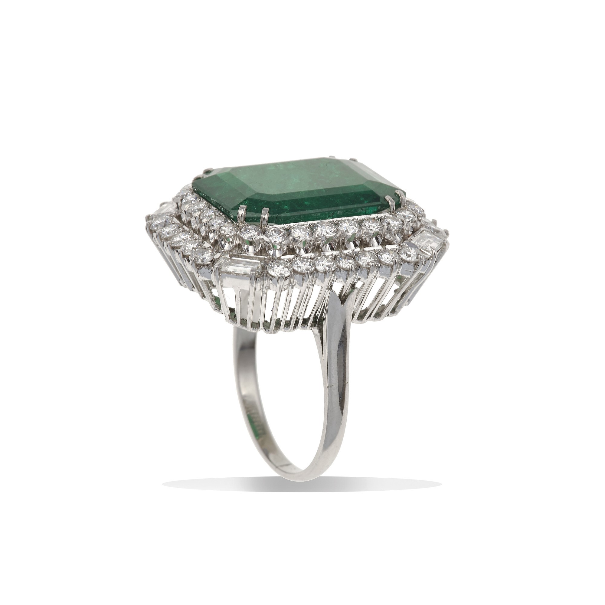 Anello con smeraldo Colombia di ct 5.50 stimati e diamanti a contorno