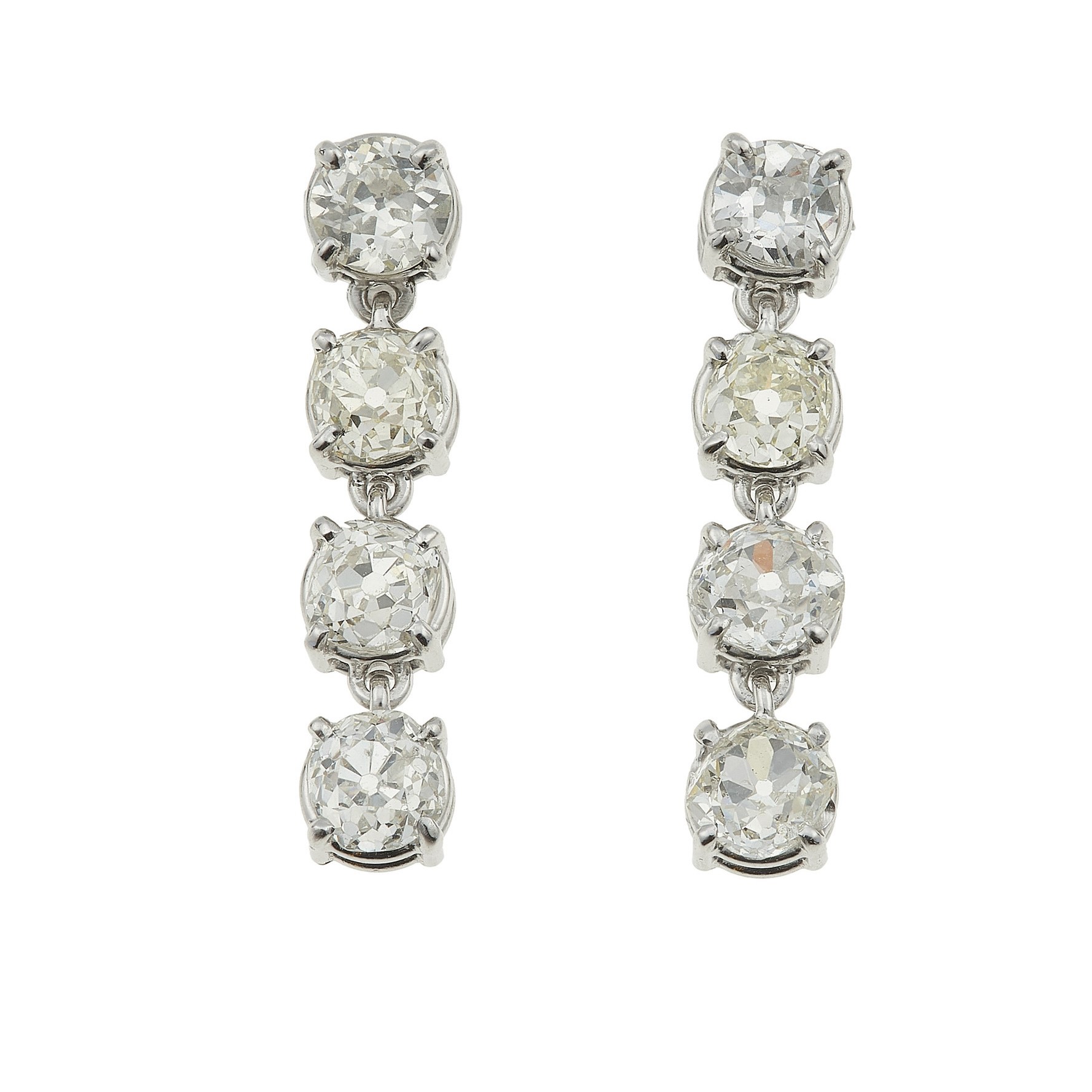 Orecchini pendenti con diamanti di vecchio taglio per totale ct 2.80 circa