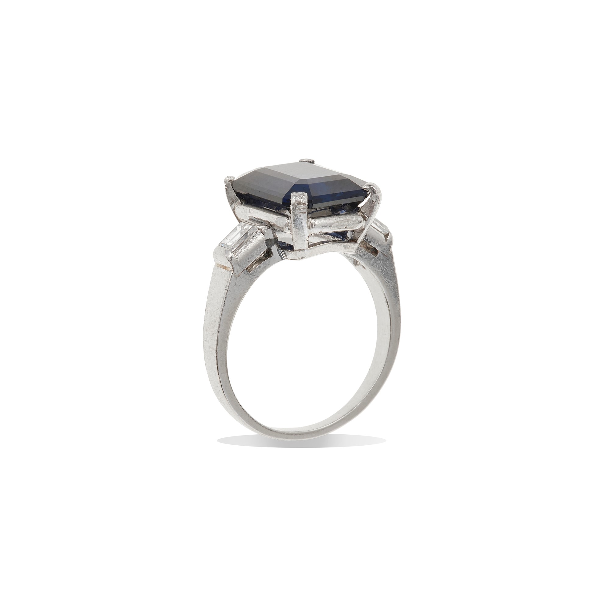 Anello con zaffiro taglio smeraldo di ct 6.99 montatura in platino. Zaffiro...