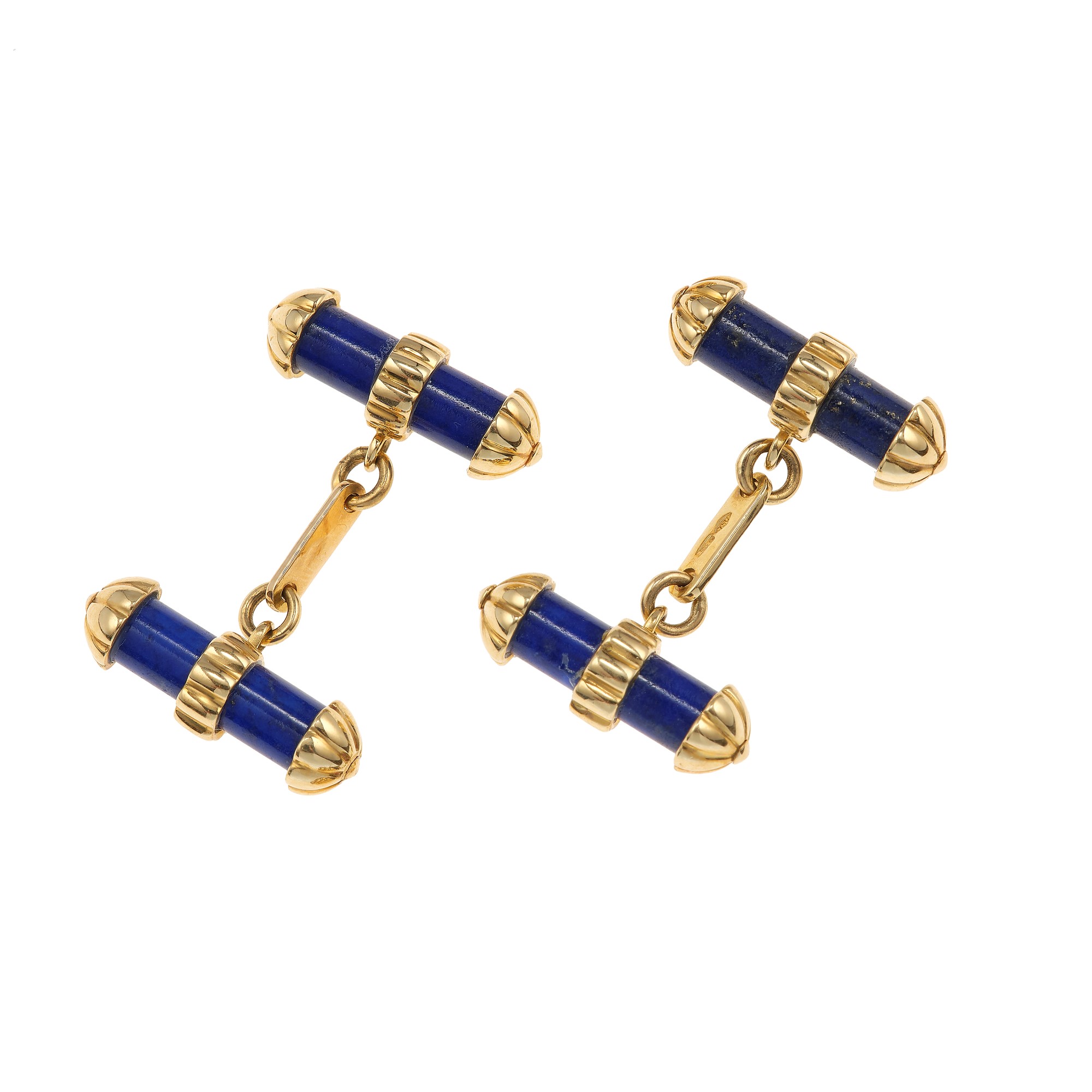 Bottoni da polso con lapislazzuli montatura in oro giallo 750/1000,...